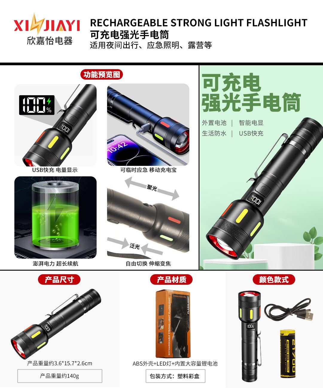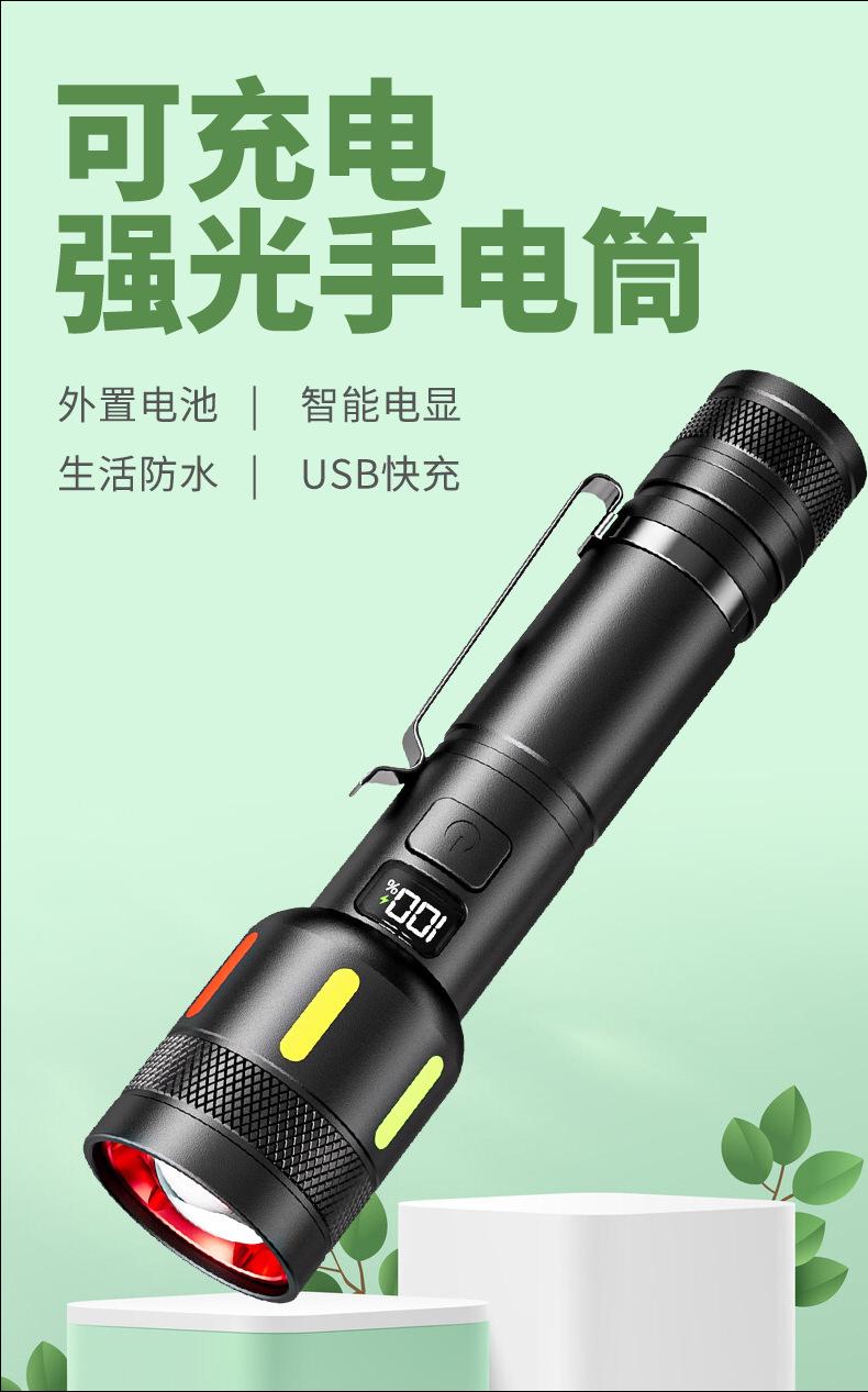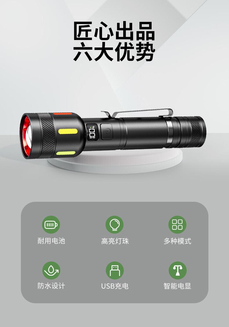 Linterna Exterior Zoom Carga Transfronteriza Largo Alcance Hogar Larga Duración Pantalla Digital Láser Blanco Multifunción Luz Fuerte