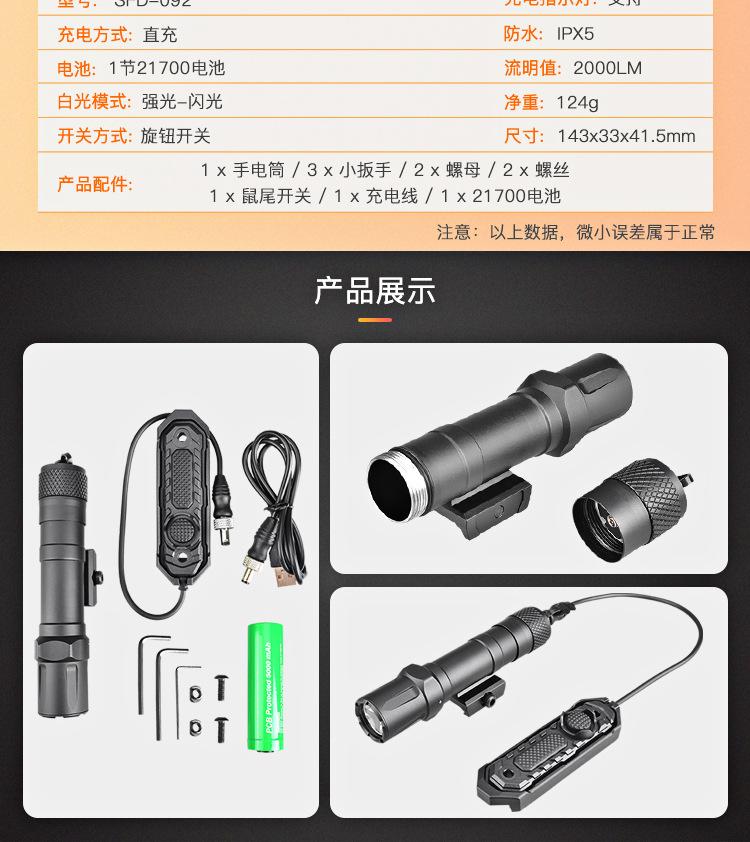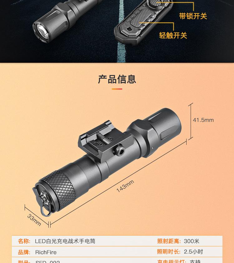 Linterna de Luz Fuerte Richfire 2000 Lúmenes Riel Guía Pickupinini de 20 mm Luz Blanca Linterna Táctica Colgante