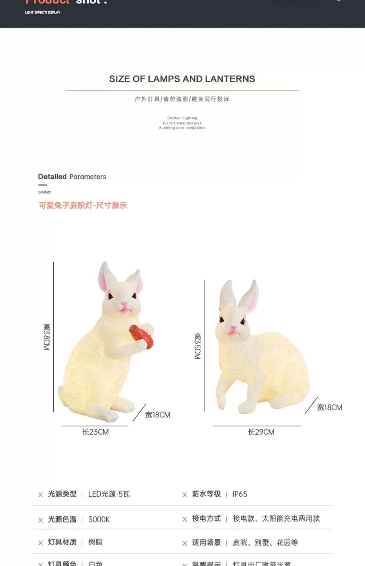 Lámpara de conejo luminosa para exteriores, lámpara solar impermeable para animales, lámpara de césped para jardín, lámpara de modelado para jardín