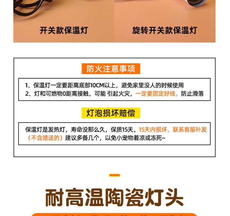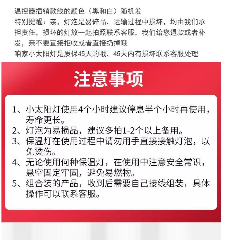 220v-25w heating lamp, 220v-50w heating lamp, 220v-75w heating lamp, Temperature control switch + 1.8m wire le...