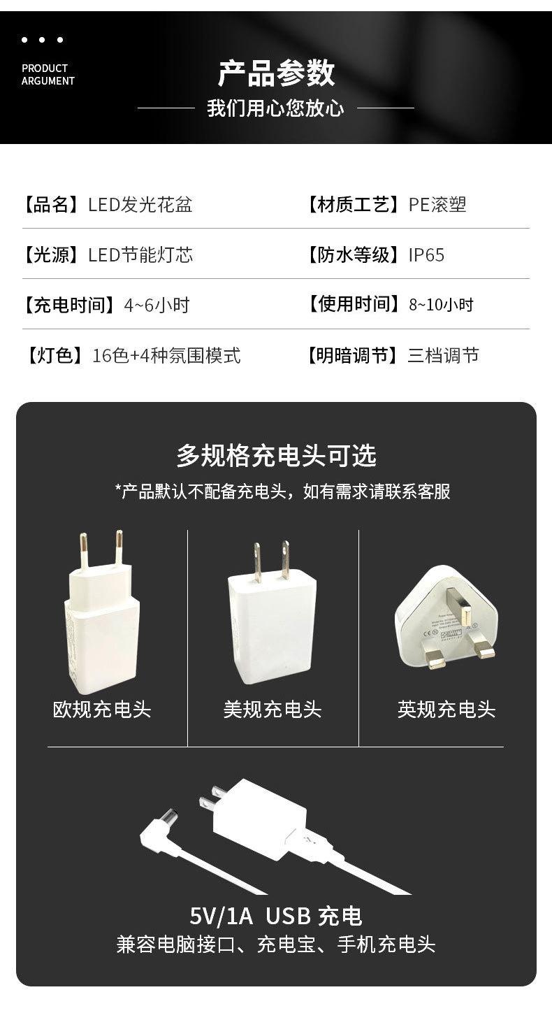 Maceta LED redonda impermeable para exteriores, para patio, pasillo, muebles luminosos, maceta decorativa europea y americana para suelo, contenedor para plantas.