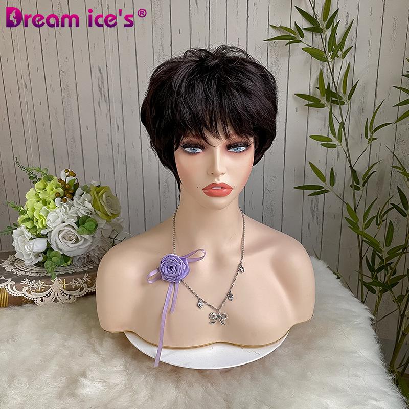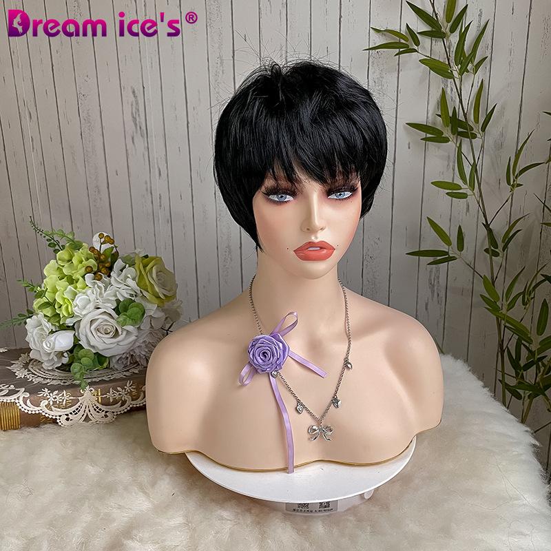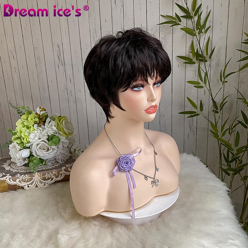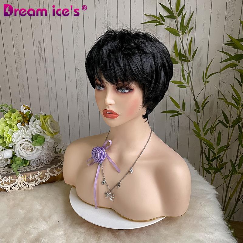 Ventas directas de fabricantes Pelucas europeas y americanas doradas cortas hechas a máquina de fibra química para mujeres pelucas de cabello rubio