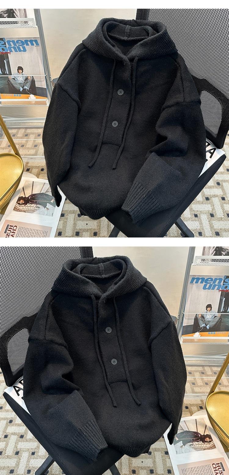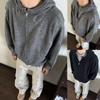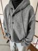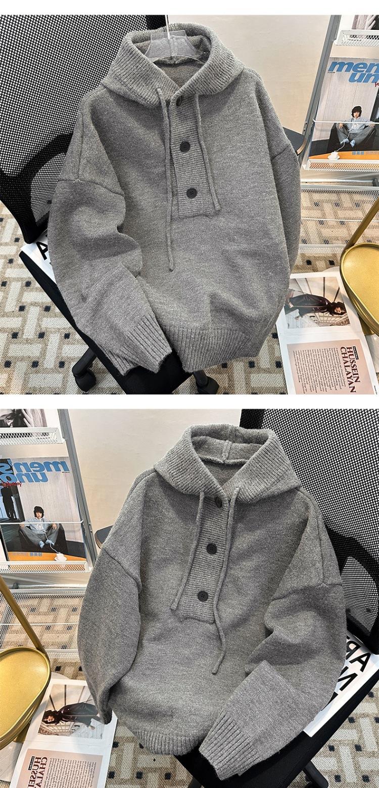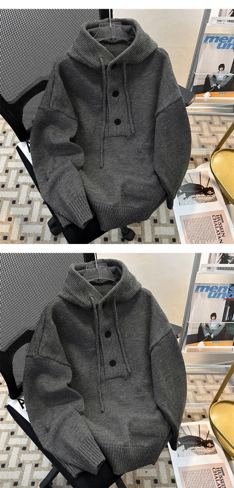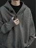 Suéter holgado con capucha gris retro americano al por mayor para hombre, chaqueta de punto avanzada de estilo relajado para otoño e invierno.