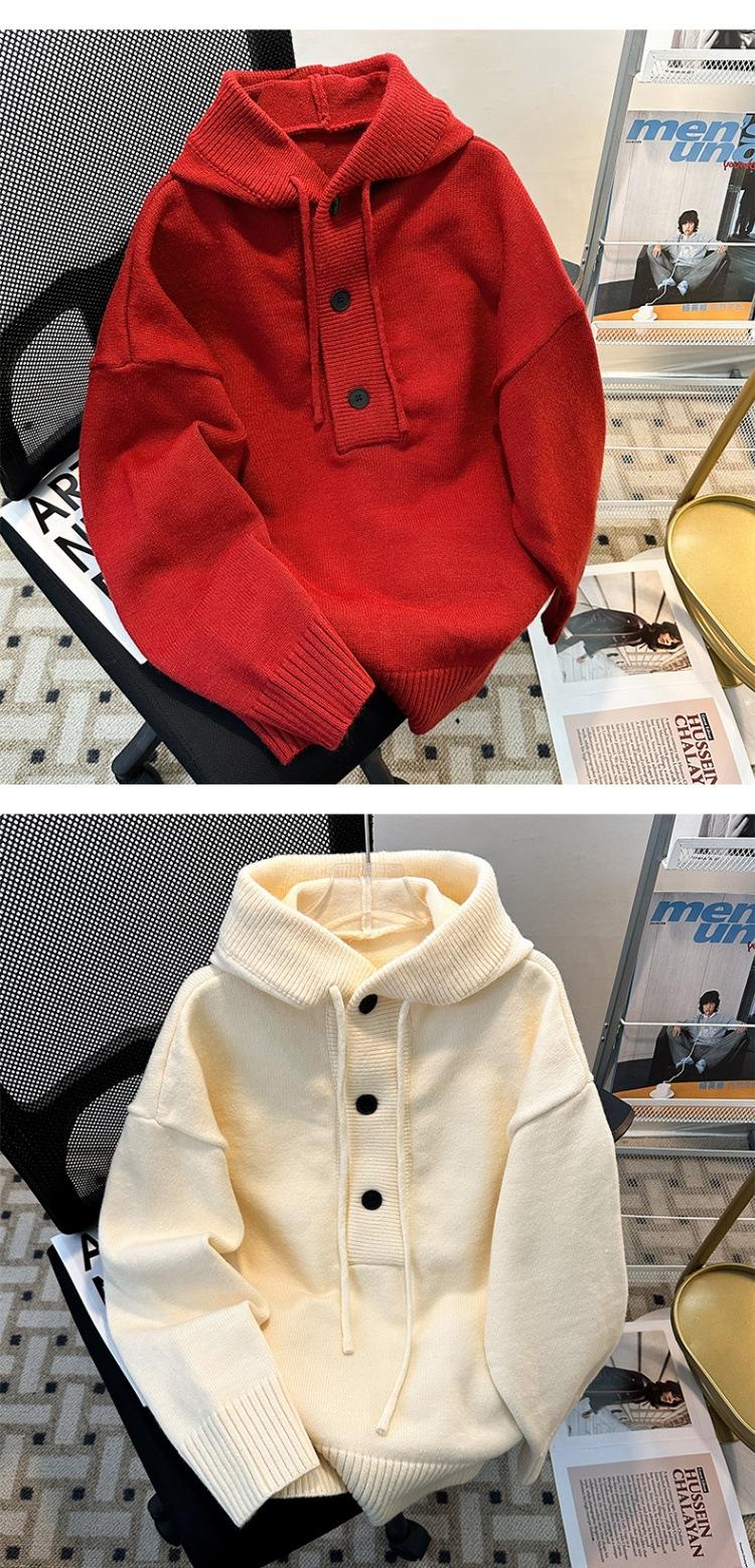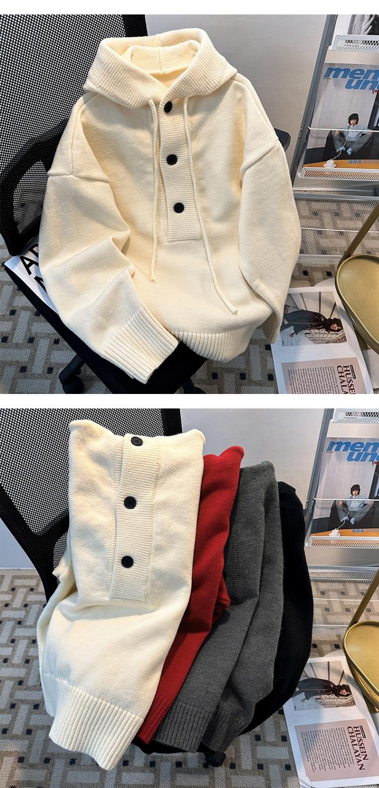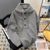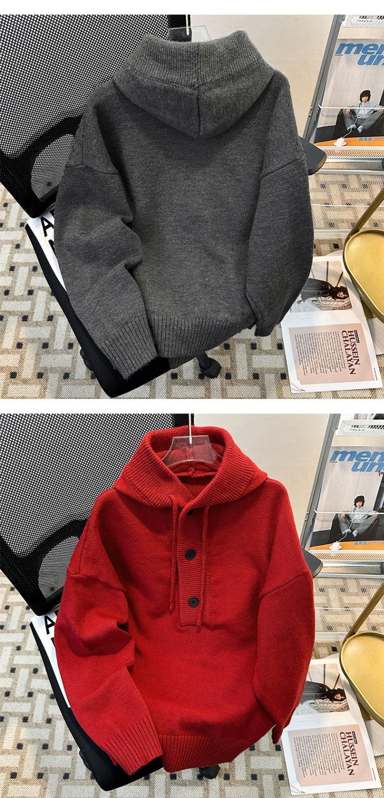 Suéter holgado con capucha gris retro americano al por mayor para hombre, chaqueta de punto avanzada de estilo relajado para otoño e invierno.