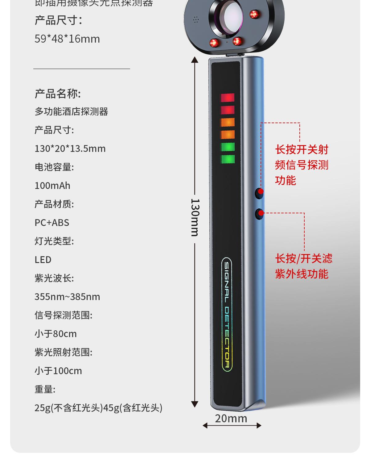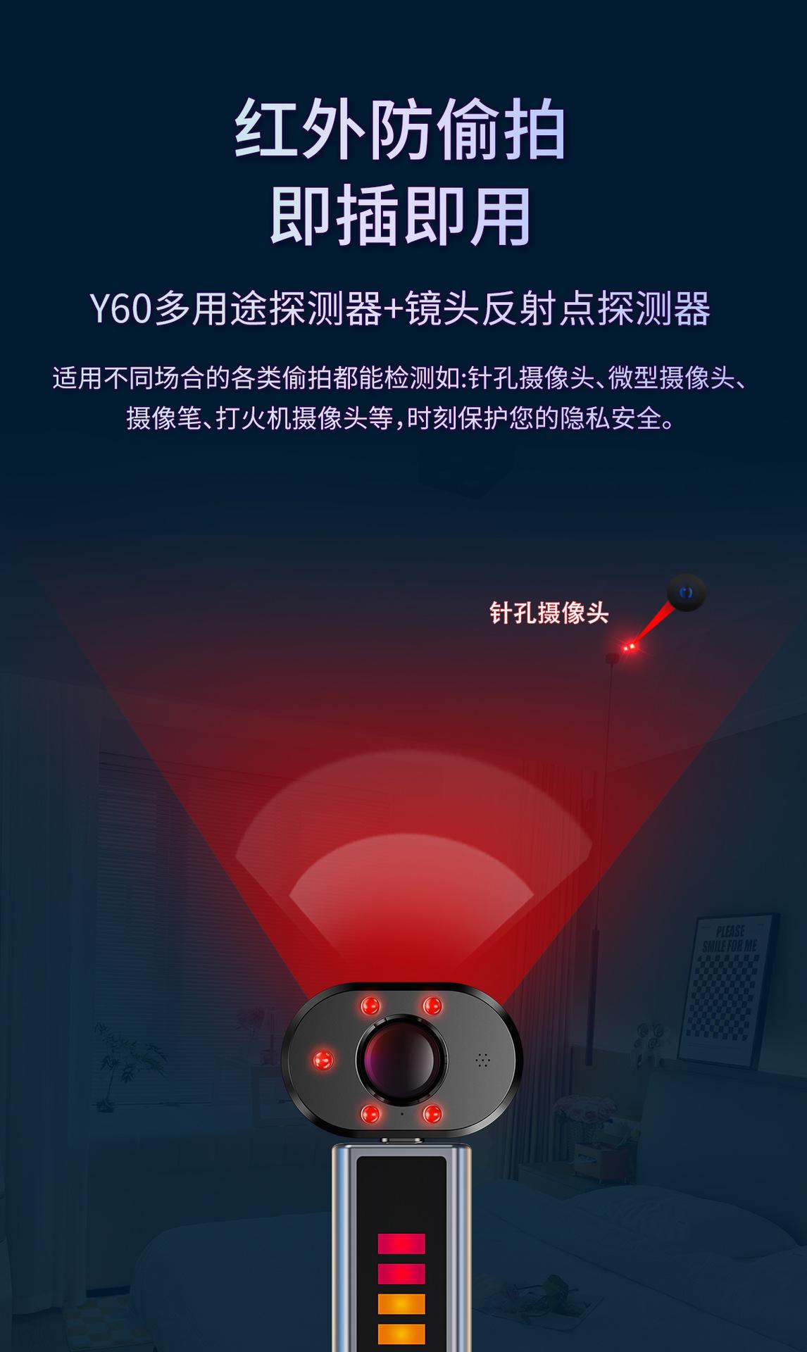 Detector de cámara Y60, vigilancia anti-espía, anti-rastreo, detección infrarroja, alarma, detector de señal inteligente