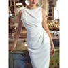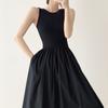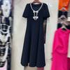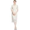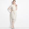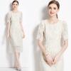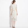 Falda Francesa Ligera y Madura de Encaje Calado, Aspecto Adelgazante en la Cintura, Vestido Alto Transfronterizo Exterior de Manga Corta con Cuello Redondo