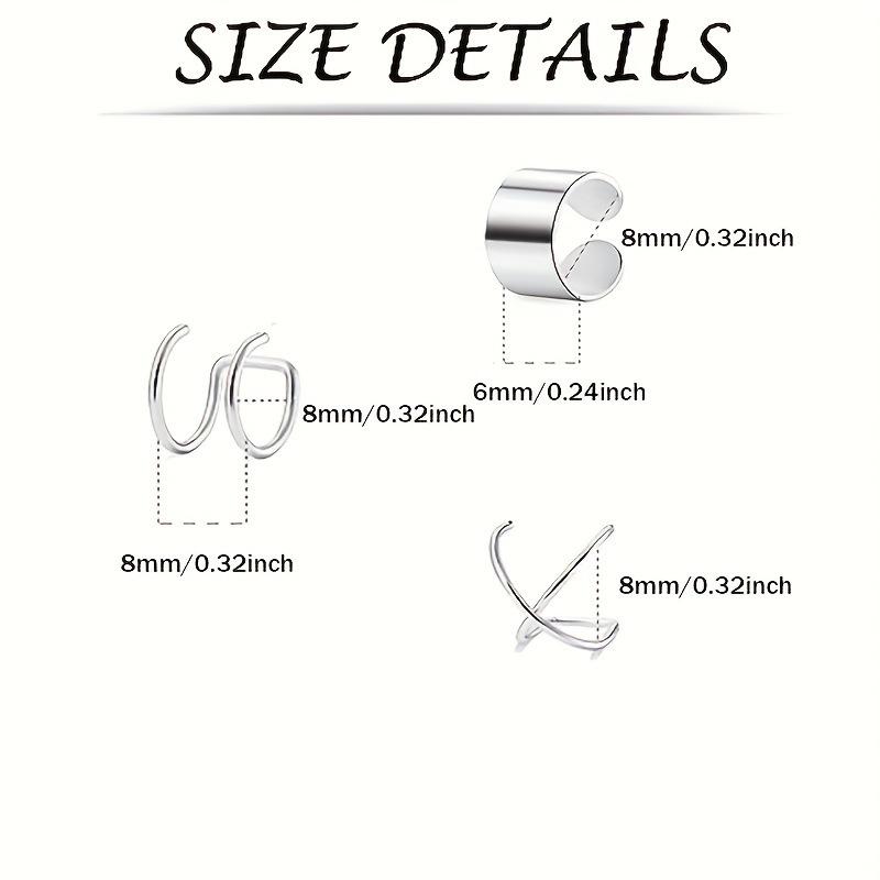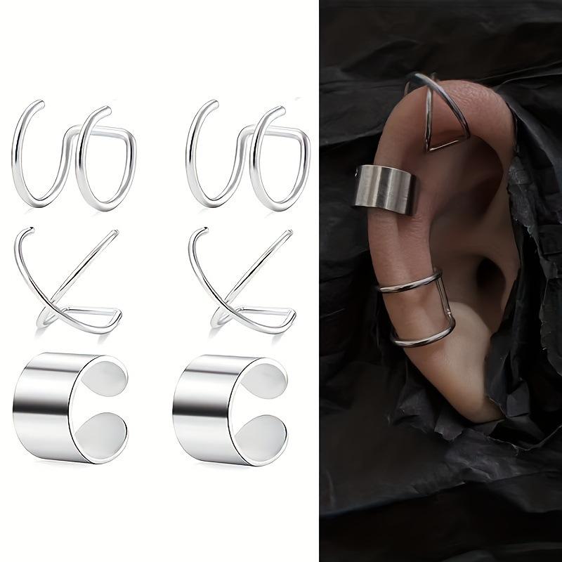 3 pares de pendientes de acero inoxidable con clip para la oreja, de plata, combinados, ideales para la venta en Amazon.