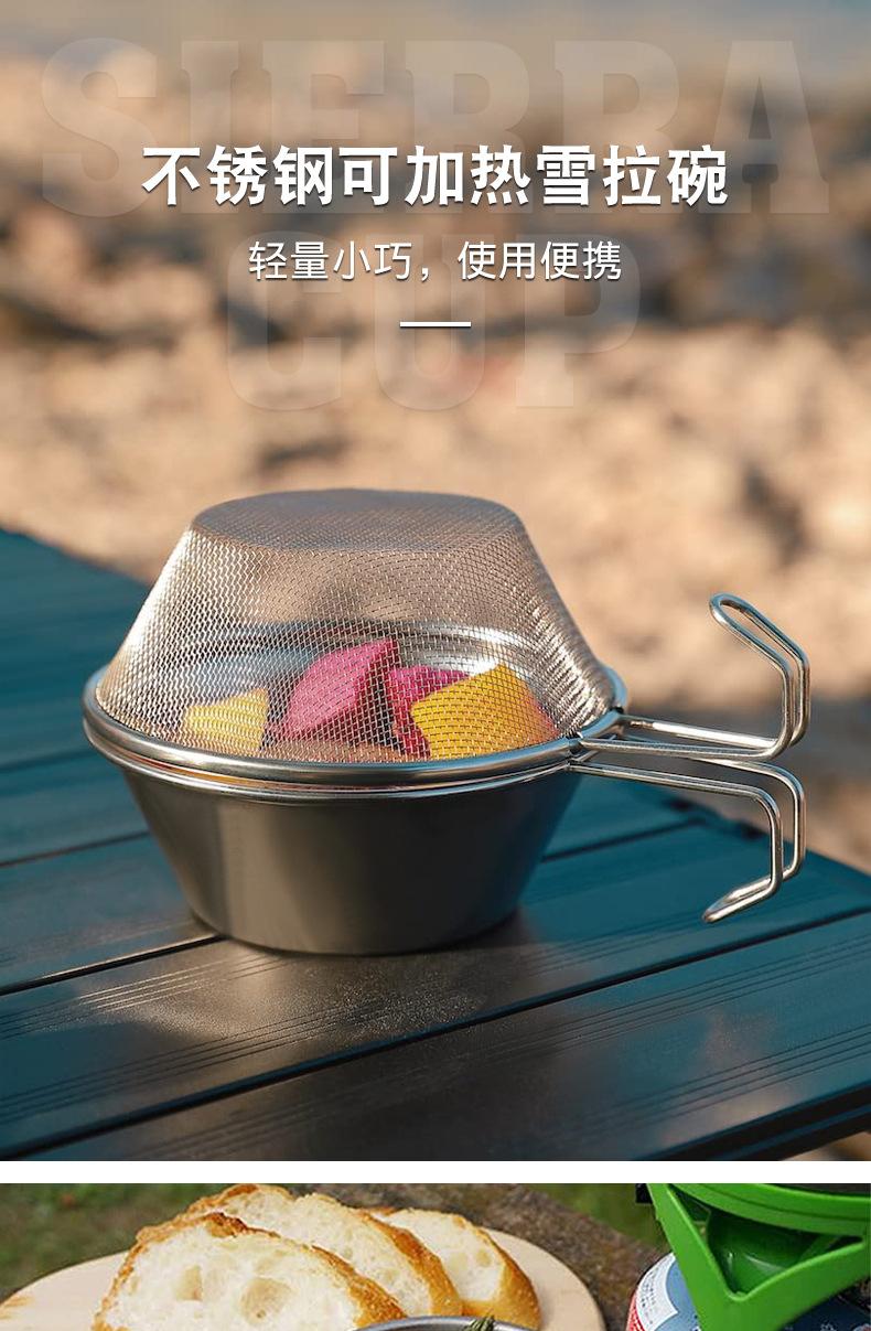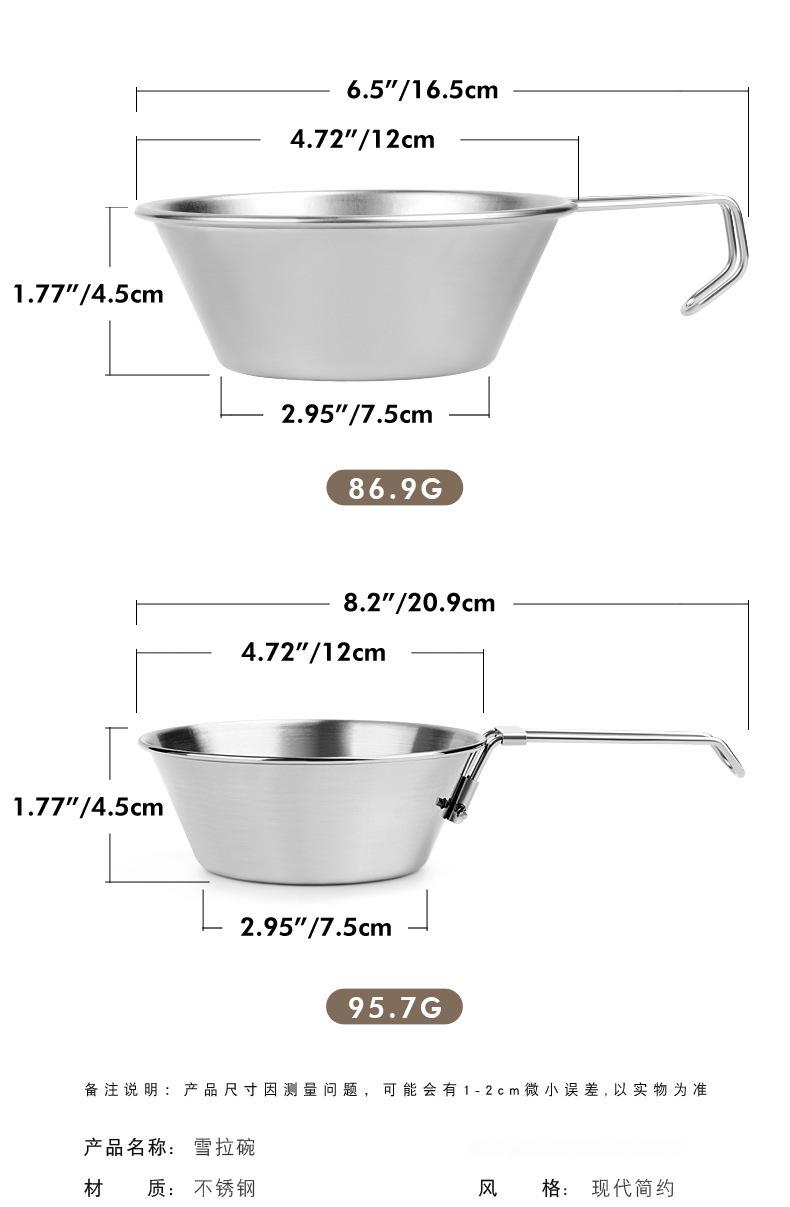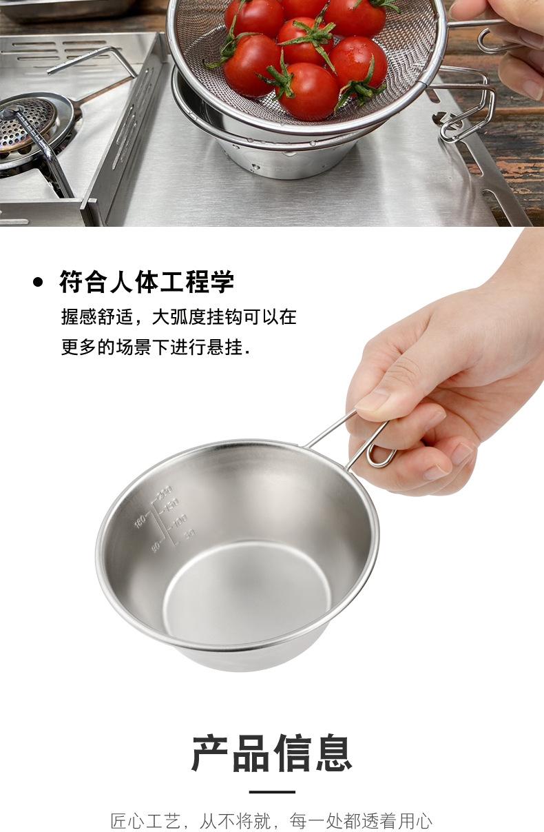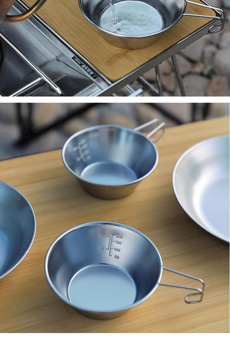 Taza colgante de camping al aire libre, taza de acero inoxidable 304, tazón Shella, taza de café, vajilla de camping, copa de fruta, utensilios de cocina para exteriores
