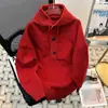 Suéter holgado con capucha gris retro americano al por mayor para hombre, chaqueta de punto avanzada de estilo relajado para otoño e invierno.