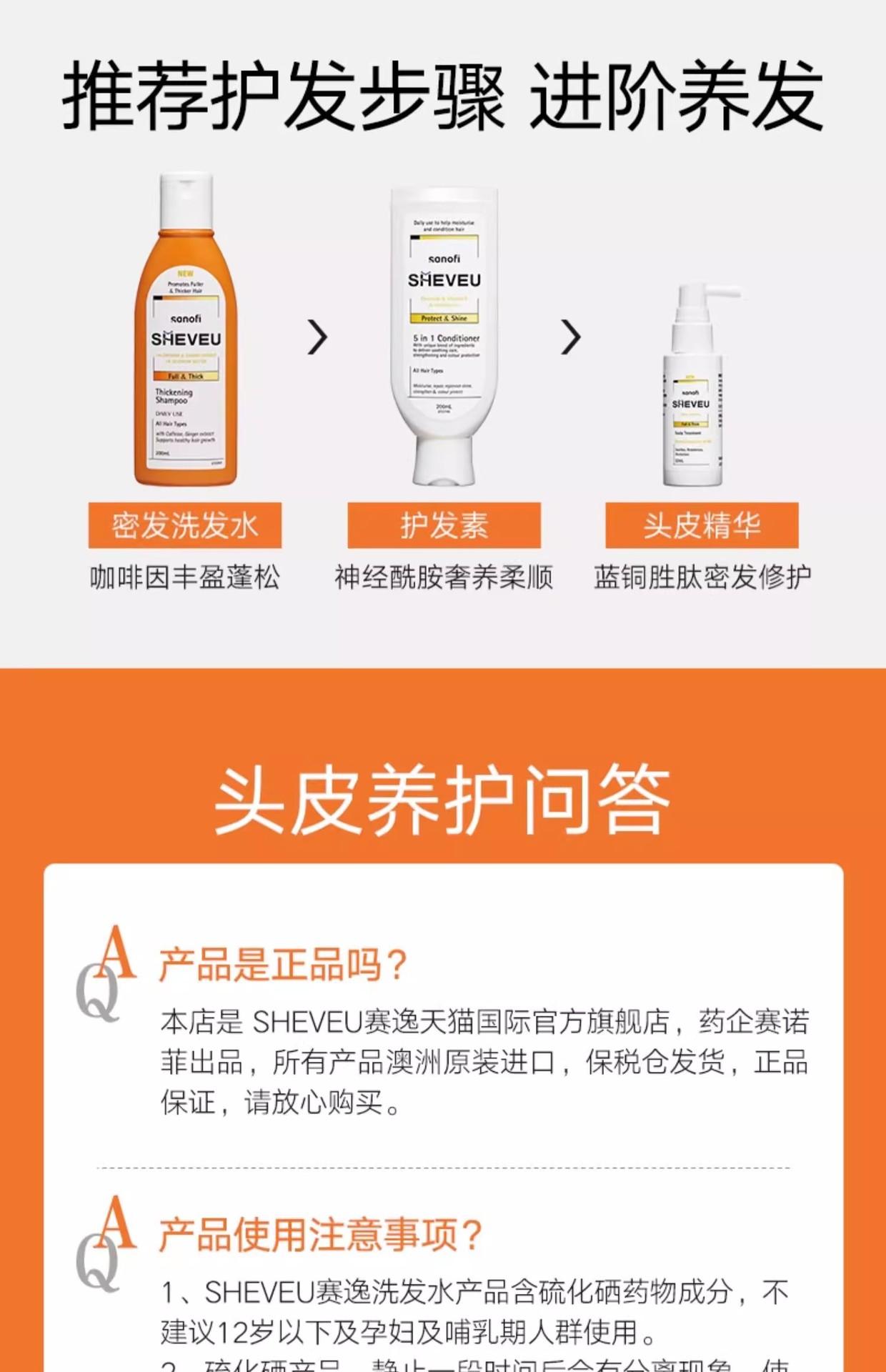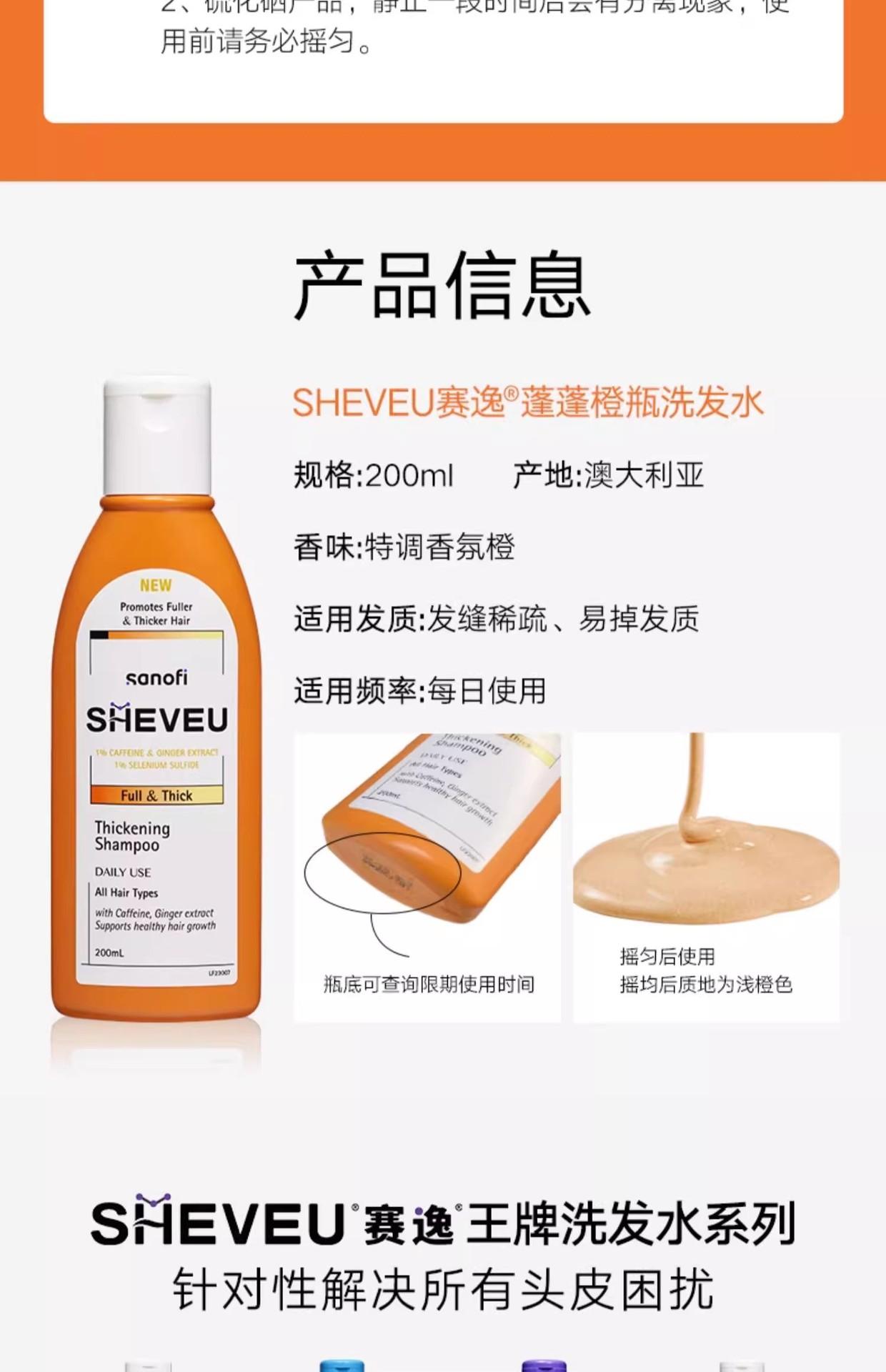 Champú Anticaspa y Antipicazón Sheveu Importado Sulfuro de Selenio Cafeína Jengibre Champú Anticaída Naranja