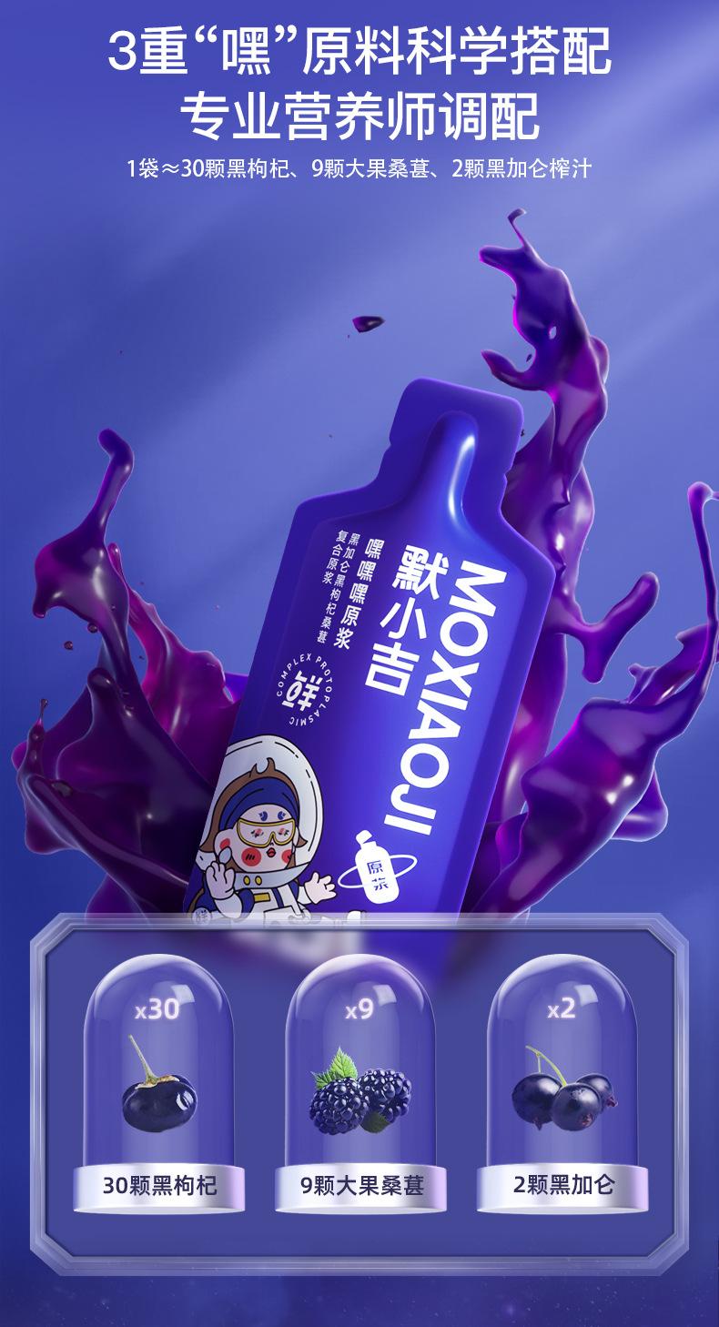 Compra [Mo Xiaoji] Hey hey hey 210ml en caja 7 bolsitas pequeñas de jugo de mora arena puré de goji negro grosella negra al por mayor en Joom.pro