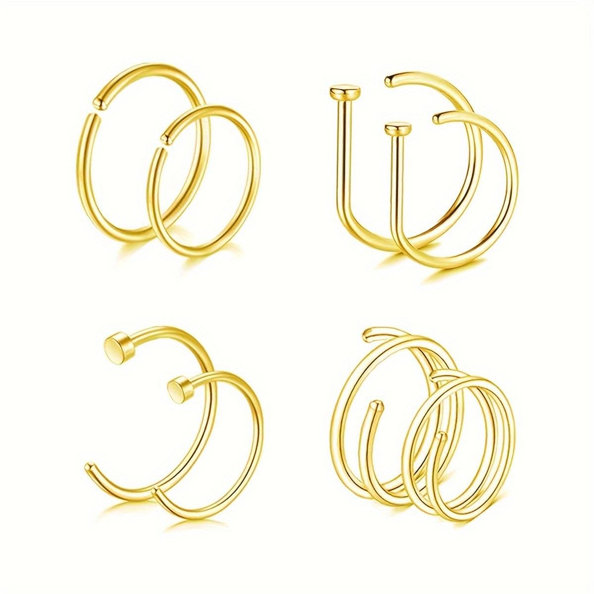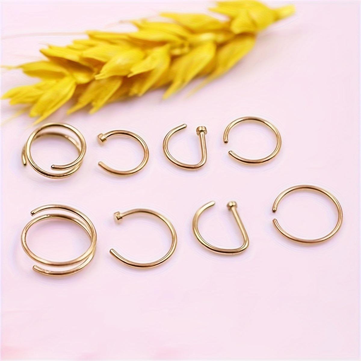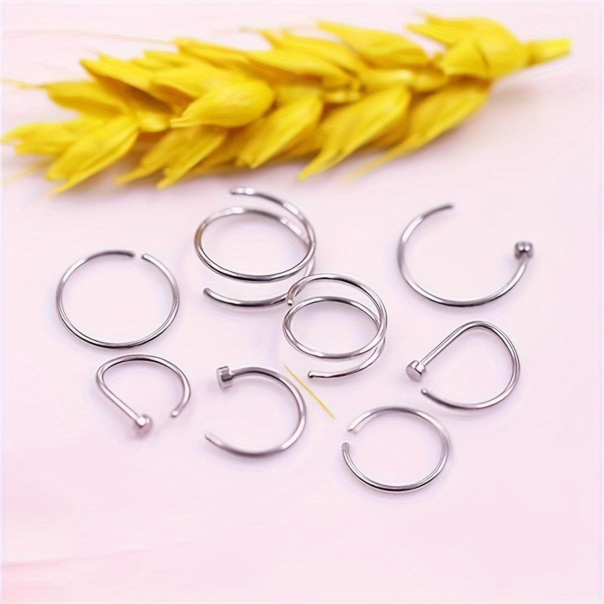 Anillo nasal de acero inoxidable de 8 piezas transfronterizo, joyería para perforaciones, combinación de plata y oro, oferta especial de Amazon.