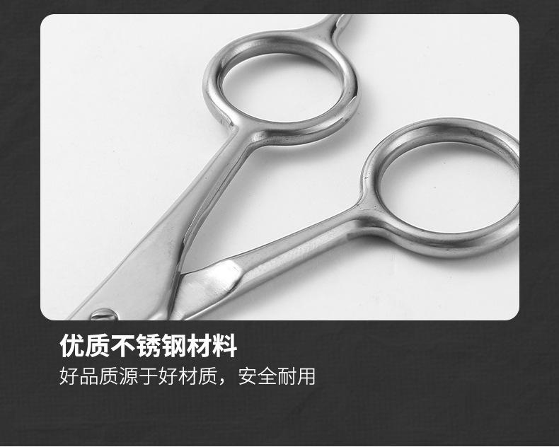 Tijeras de barba de acero inoxidable de fábrica, tijeras de barba, tijeras para vello nasal, tijeras de maquillaje, tijeras para cabello en casa, bordado, peluquería