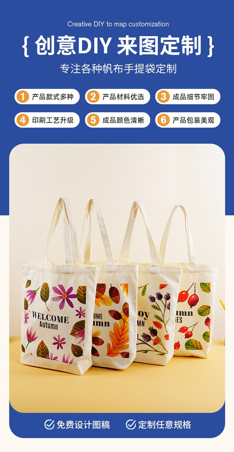 Bolsa de Lona Logo Personalizado Bolso de Hombro Bolso de Mano Impresión Personalizada Organización de Capacitación Patrón Publicitario Bolsa de Sastrería Bolsa de Algodón