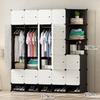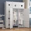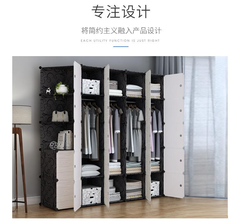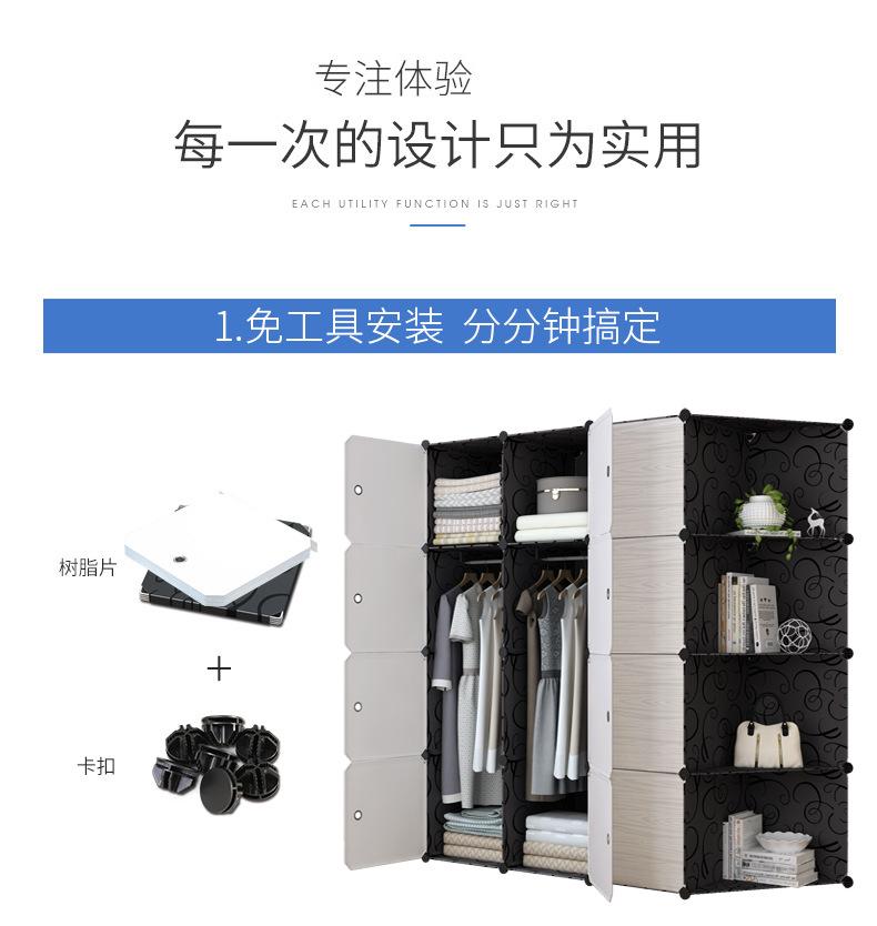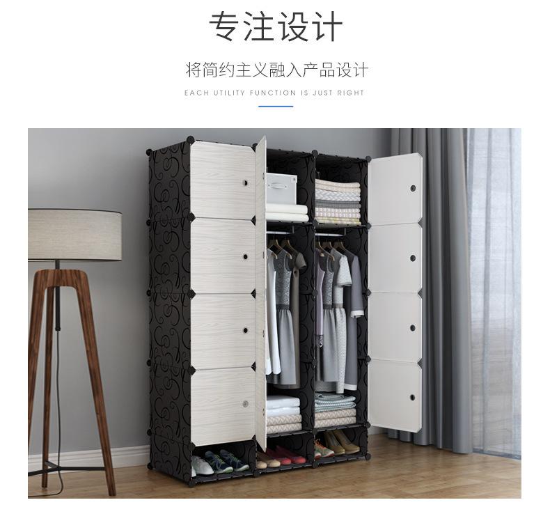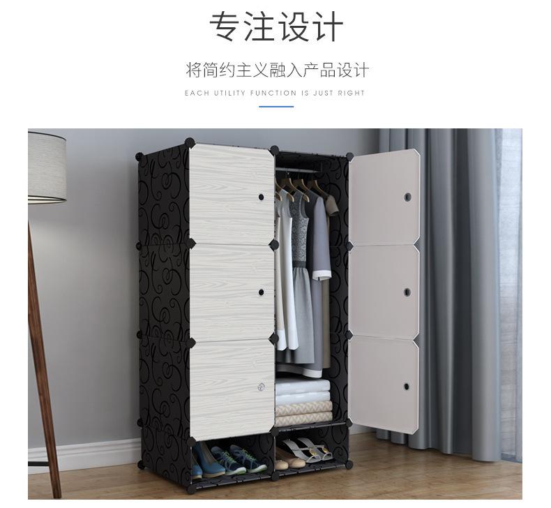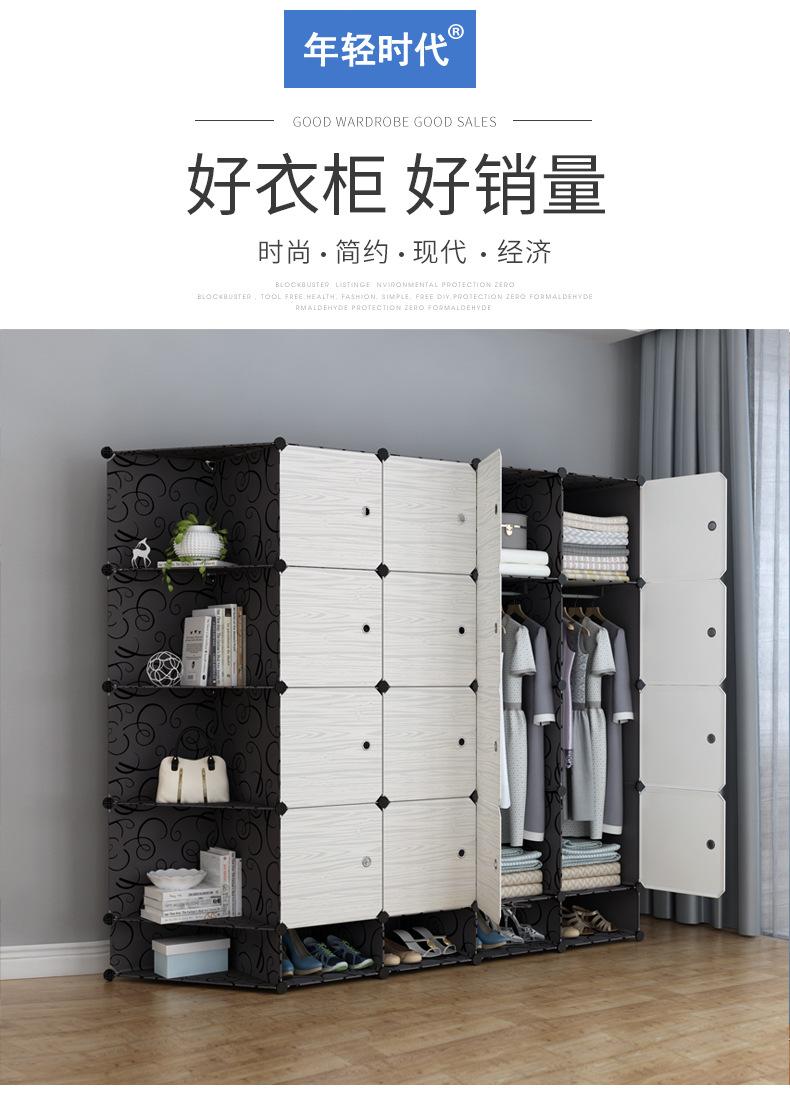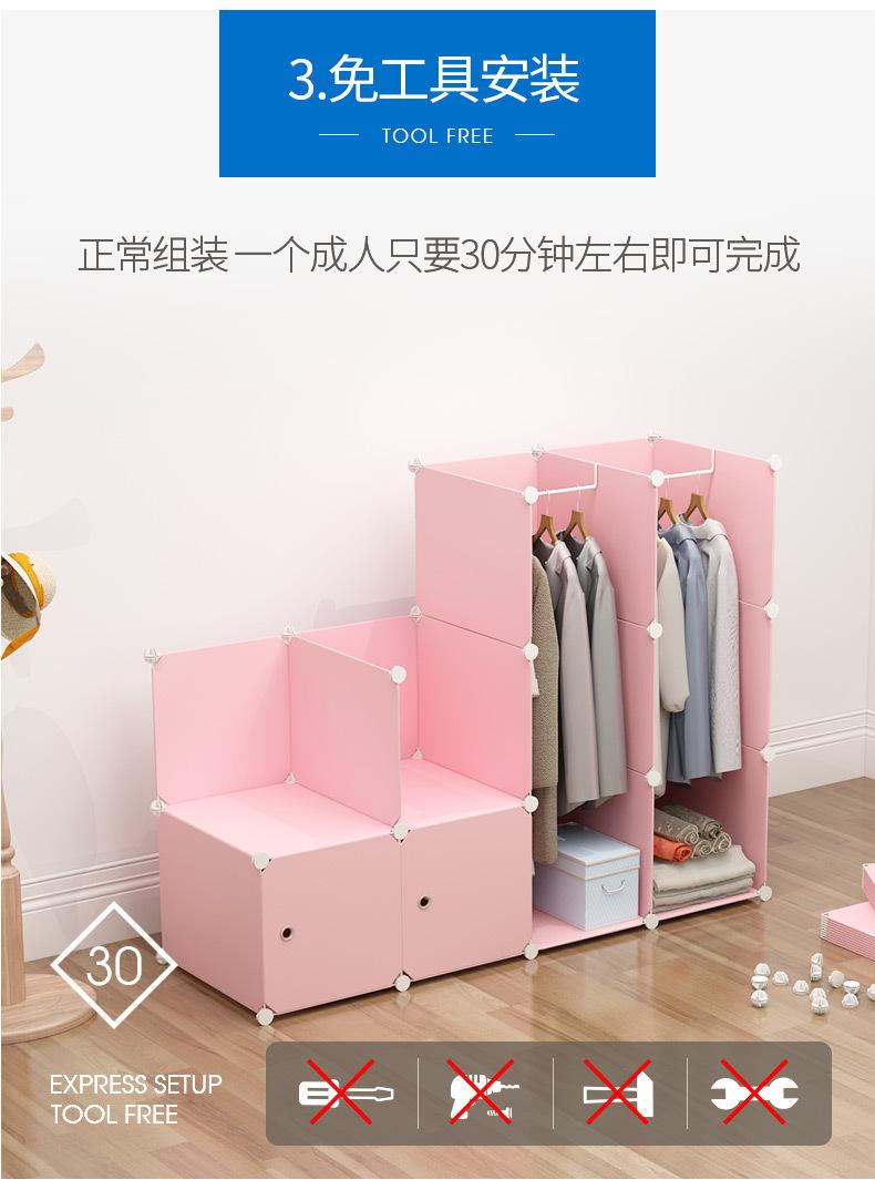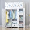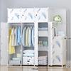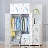 Armario Simple Moderno Simple Montaje Grano de Madera Maciza Combinación de Armario Almacenamiento Plástico Tela Marco de Acero Almacenamiento Económico