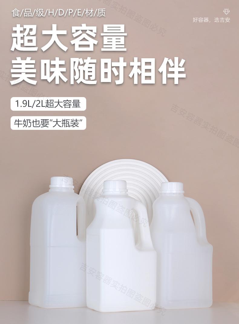 Fabricantes venta al por mayor tienda de té con leche botella cuadrada de 1.9L botella de plástico para jugo PE blanco lechoso embalaje de alimentos con tapa botella de plástico