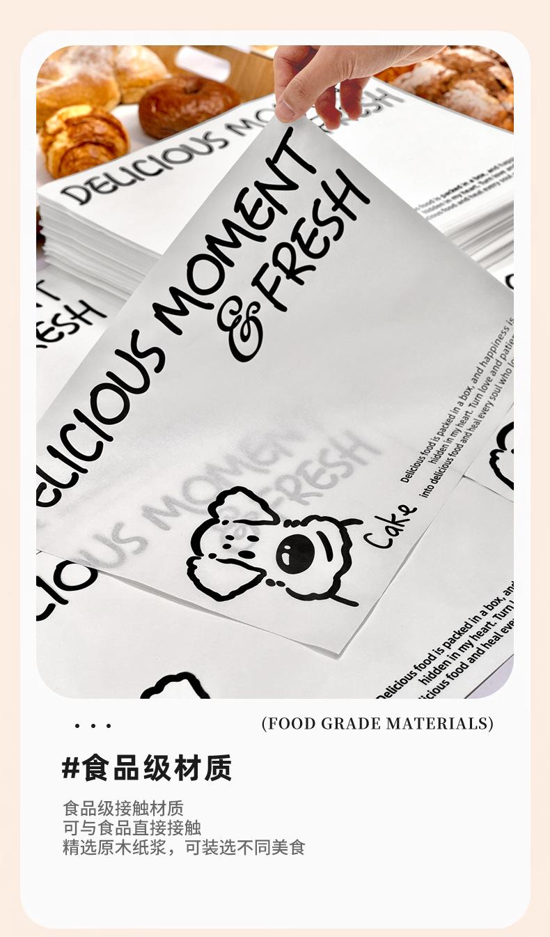 Papel desechable para platos de comida, bandejas para hornear pasteles, postres, pan, tostadas, sándwiches, envolturas de papel, embalaje