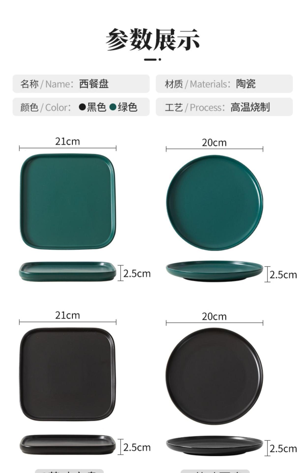 8-inch square plate (dark green), 8-inch square plate (matte black), 8-inch Western food disc (dark green), 8-...