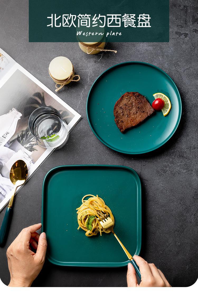 Plato de carne de cerámica nórdica, plato occidental para el hogar, plato de desayuno para ensalada, vajilla creativa, plato cuadrado, plato grande