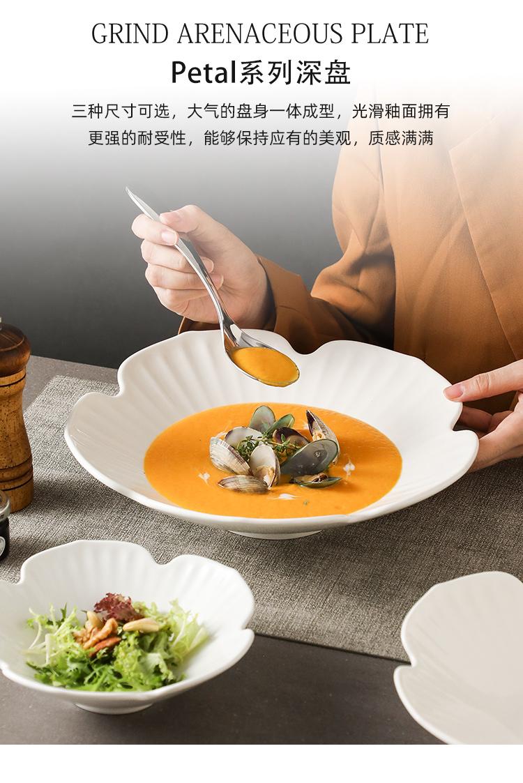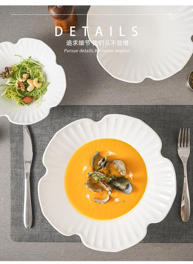 Plato de cena de comida occidental de gran valor estético, plato de sopa grande, plato de ensalada creativo de cerámica, plato de vajilla para el hogar, plato de postre