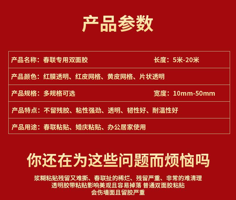 Pareado del Festival de Primavera, adhesivo de doble cara, adhesivo fuerte, adhesivo que no deja marcas, pareado de palabras Fu, adhesivo especial de doble cara, diseño de sala de bodas, juego de cinta de base de tela