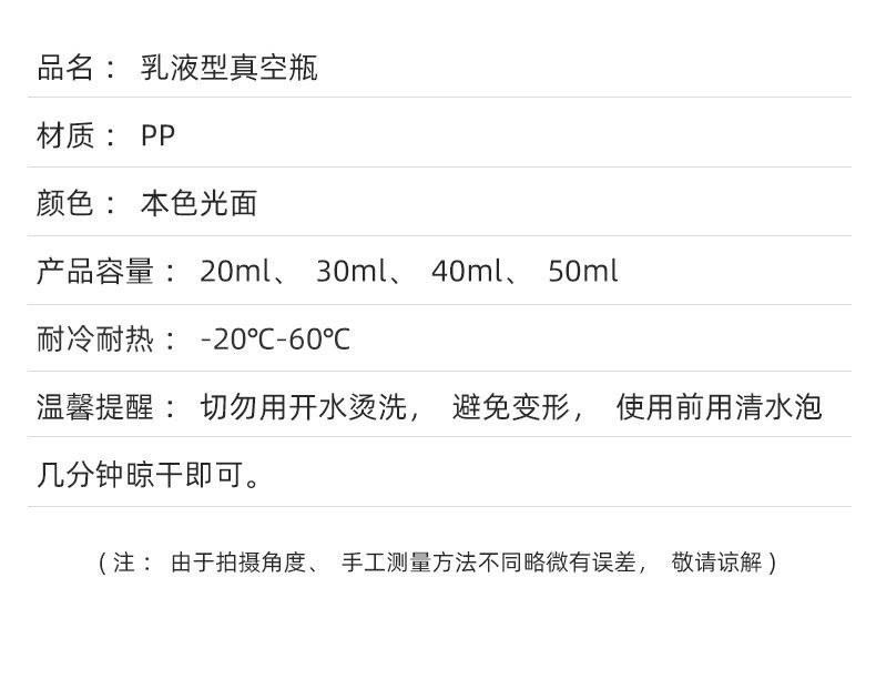 20ml new lotion vacuum bottle, 30ml new lotion vacuum bottle, 40ml new lotion vacuum bottle, 50ml new lotion vacuum bottle