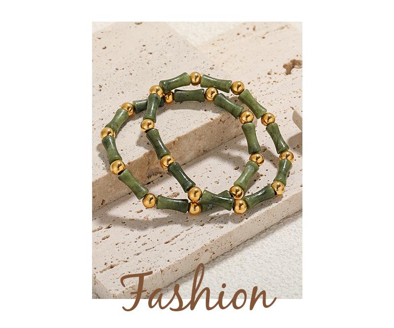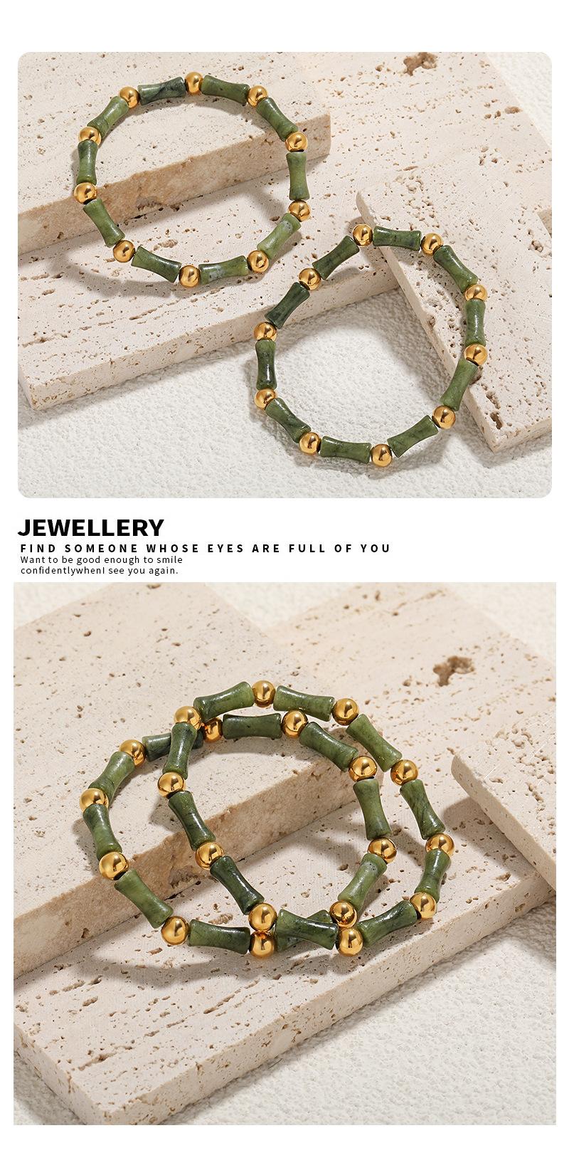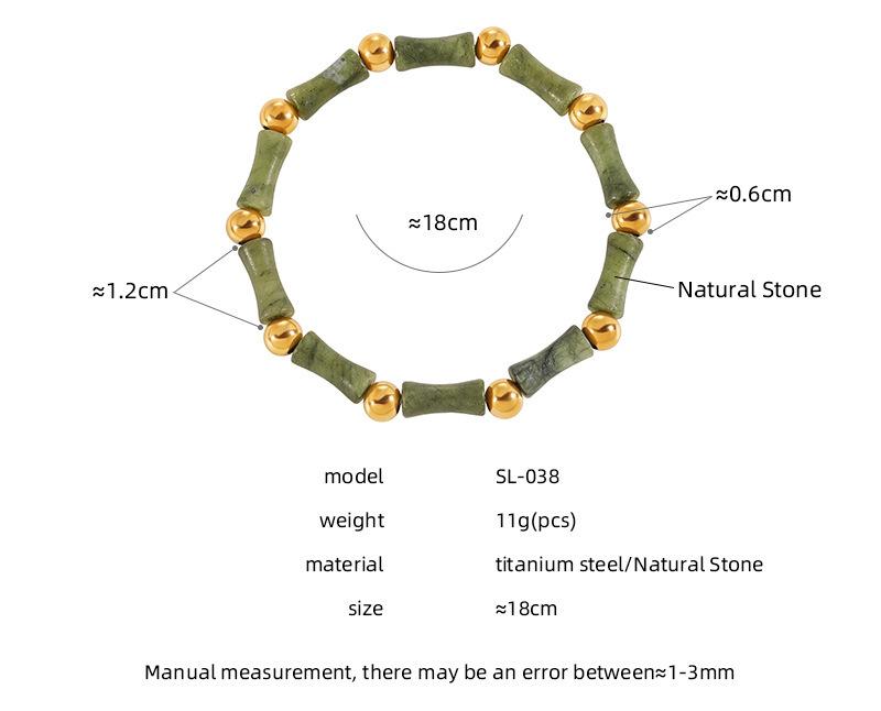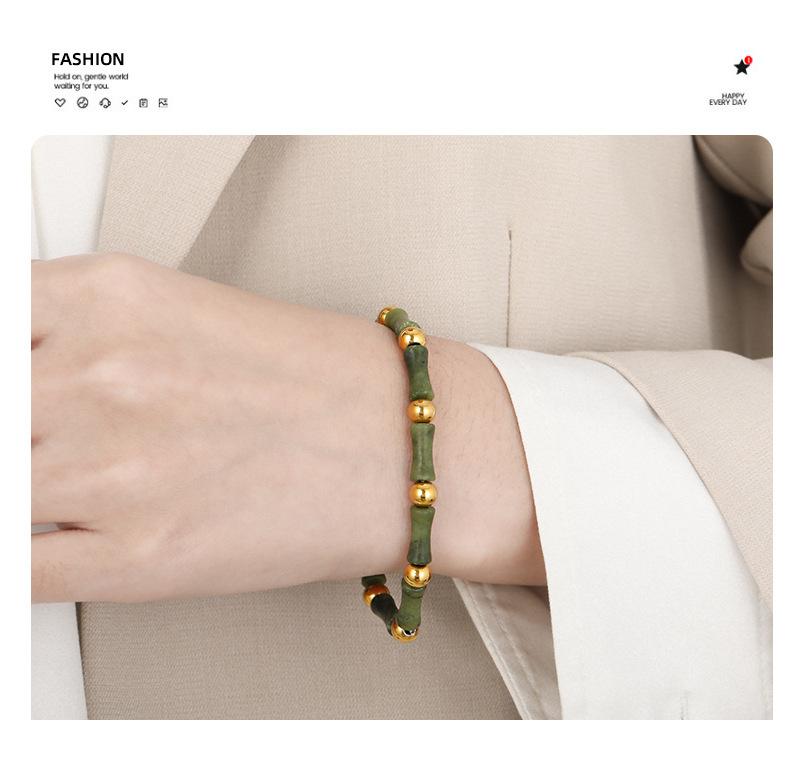Diseño Nicho Estilo Chino Nuevo Estilo Antiguo Sencillo Personalidad Piedra Natural Elástico Acero Titanio Dorado Pulsera de Moda para Mujer