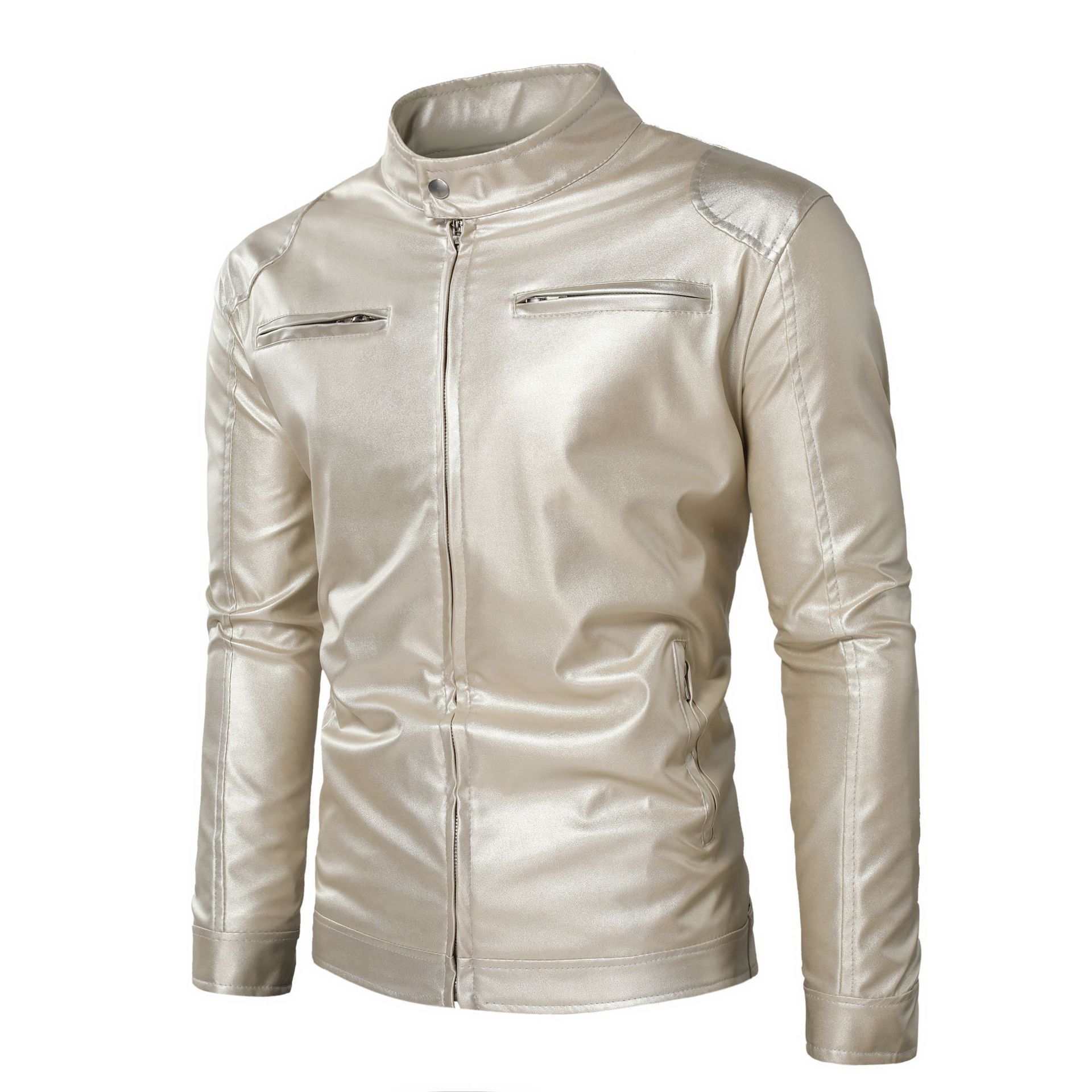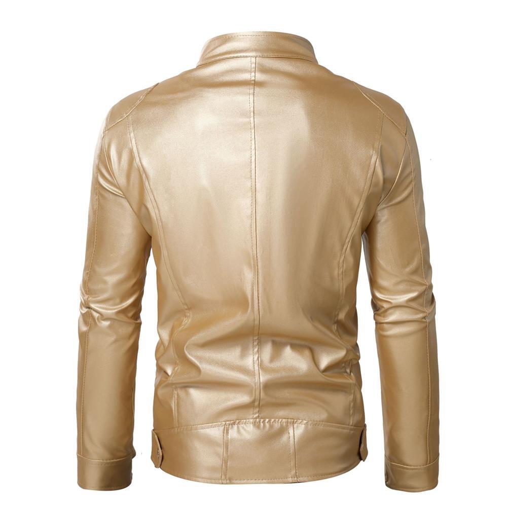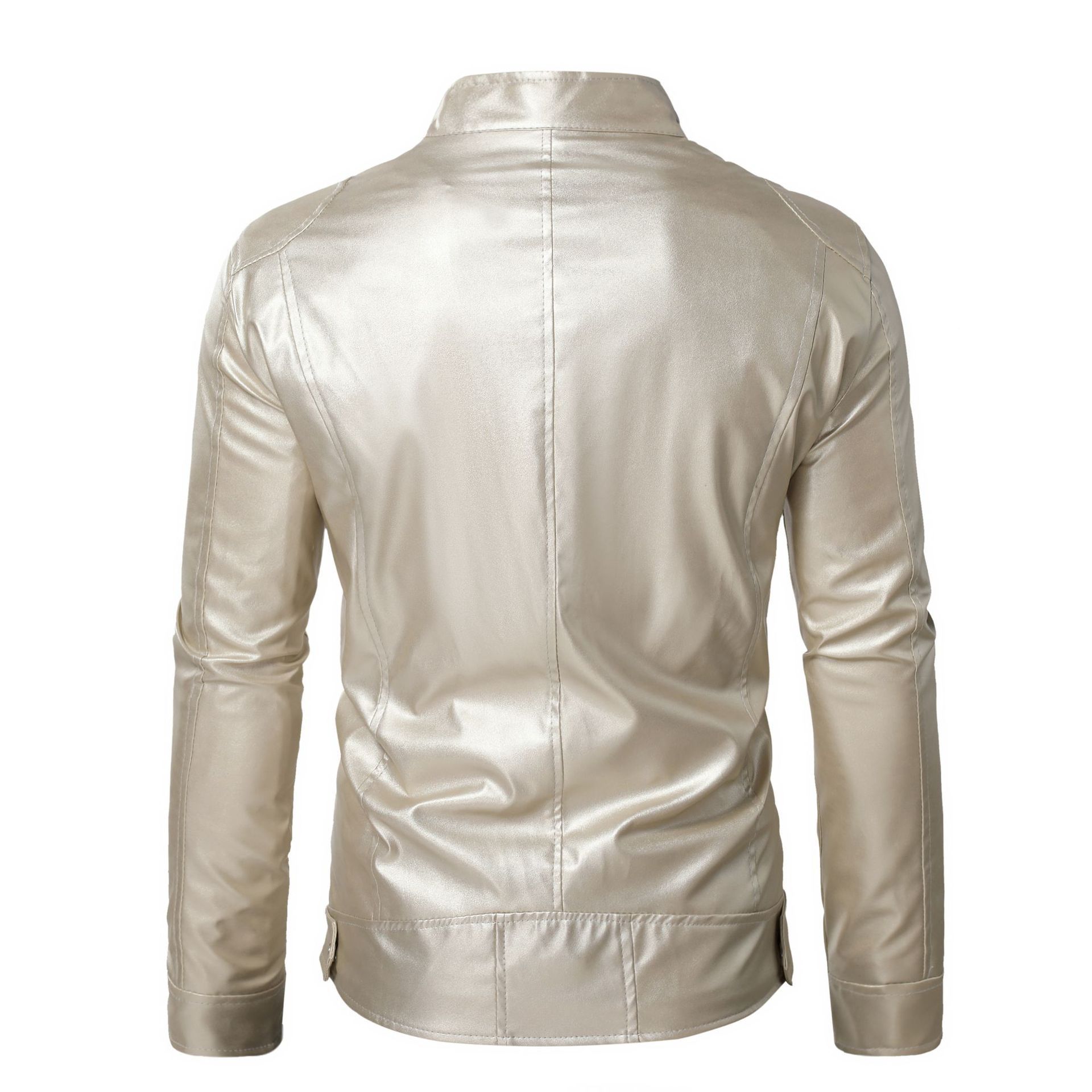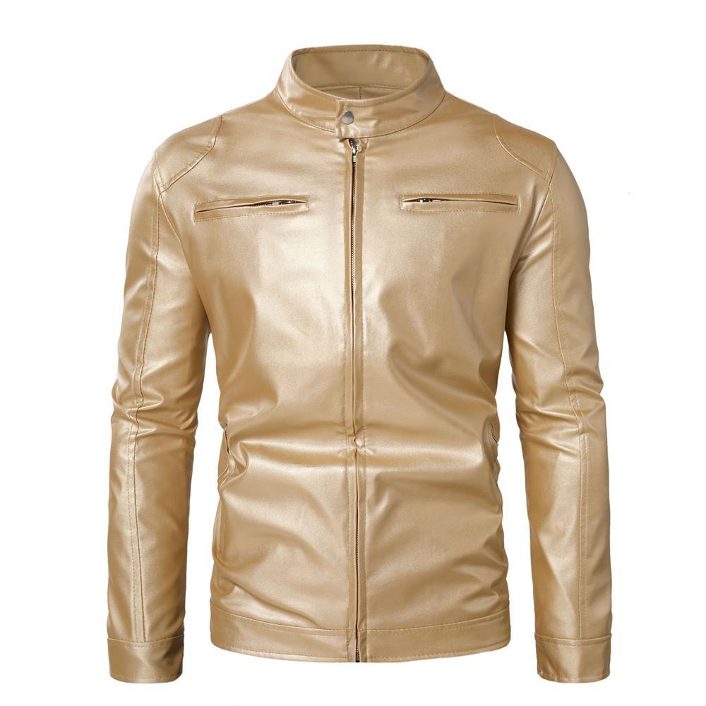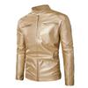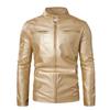 Chaqueta de cuero de motocicleta ajustada con cuello alto y cremallera de cuero PU para hombre, otoño e invierno 2023