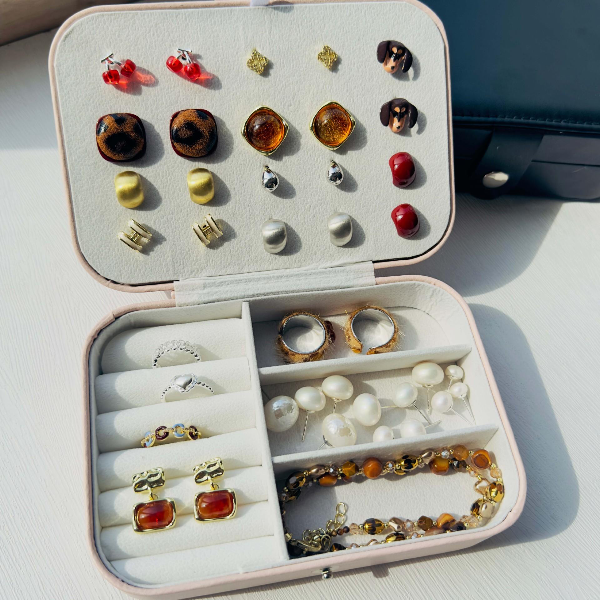 Nuevo joyero de doble capa para aretes, portátil para viaje, para anillos, collares, caja pequeña para guardar joyas