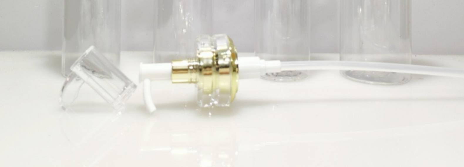 Transparent Flat Shoulder Acrylic Double Ring Electroplated Gold White Nozzle Pump, White flat shoulder acryli...