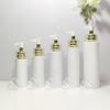 100ml; White flat shoulder acrylic double ring electroplated gold white mouth pump; Plastic