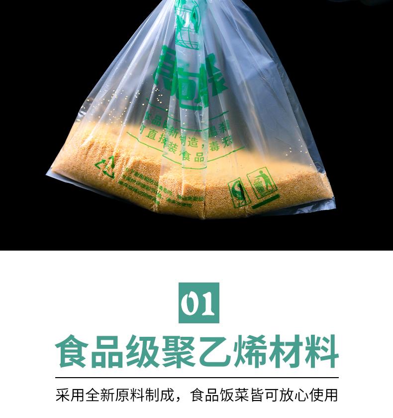 Bolsa de conservación de alimentos frescos de grado alimenticio, bolsa de plástico para envasado de alimentos cocinados de supermercado, bolsa de envasado de alimentos portátil y gruesa para el hogar.