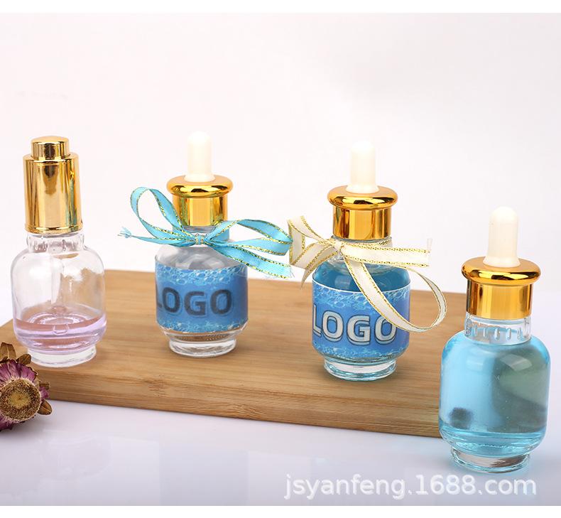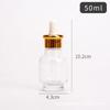 Botella de aceite esencial de 50 ml, de vidrio transparente, con gotero de plástico, para productos cosméticos y de cuidado de la piel.