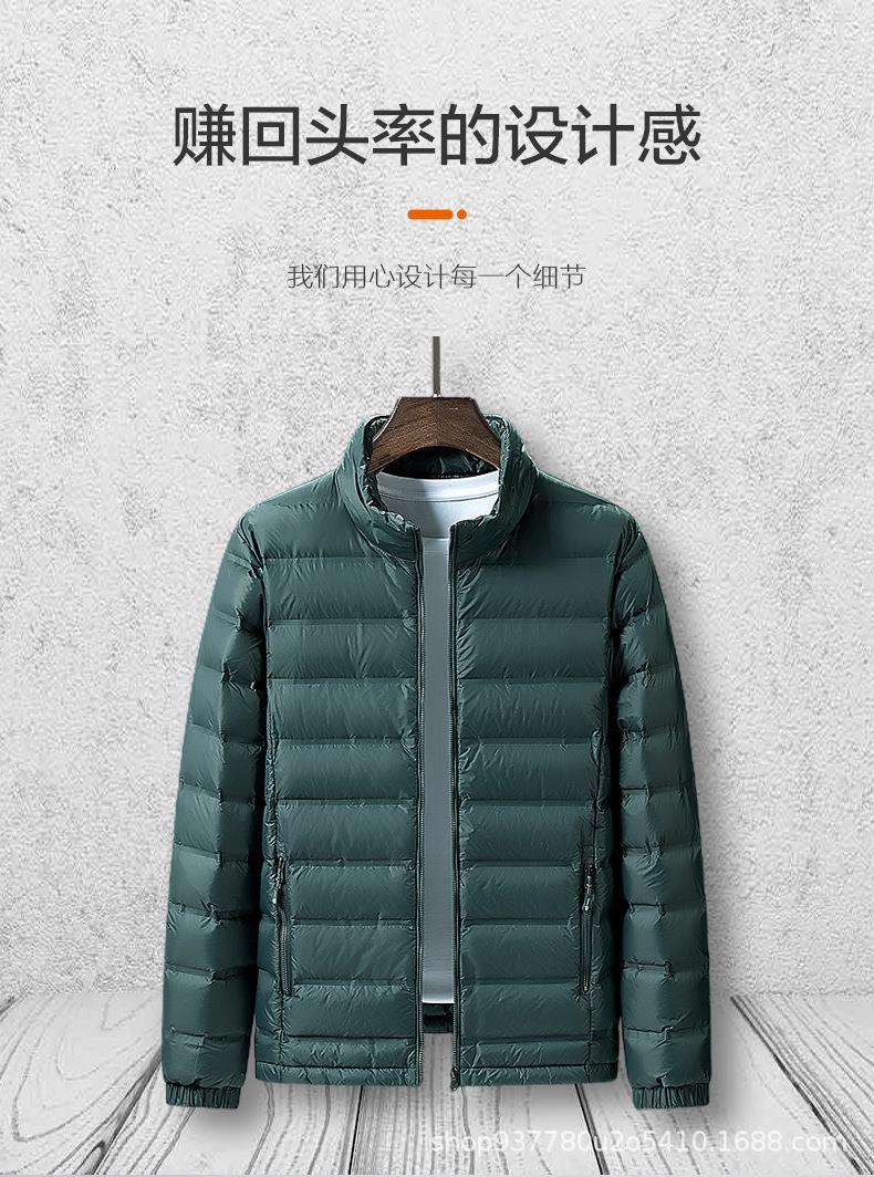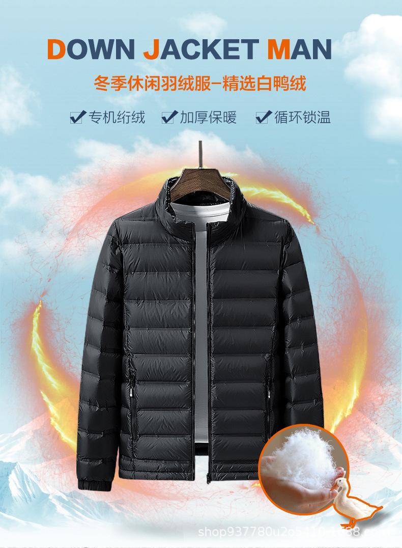 Chaqueta de plumón para hombre, otoño e invierno, ligera, de talla grande, con cuello alto, forro portátil para exteriores, abrigo interior corto y cálido y fino