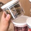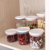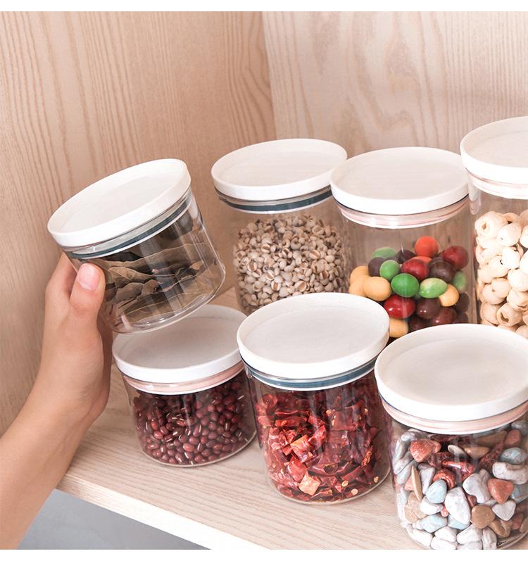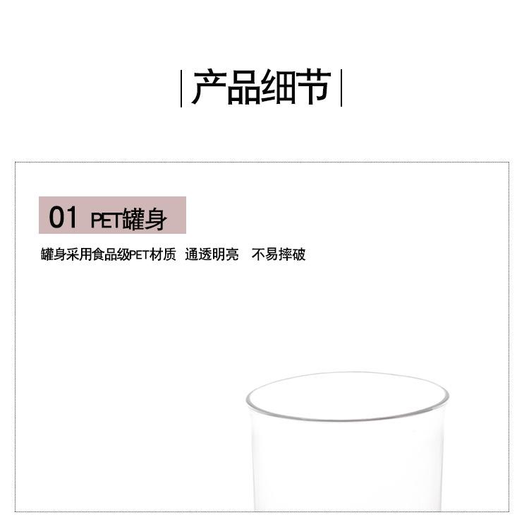El cuerpo de la lata es transparente, con un cuerpo de botella PET respetuoso con el medio ambiente + tapa de botella PP y una tapa de rosca en la parte superior. Es muy conveniente para almacenar granos, nueces y productos secos. Es fácil controlar la cantidad para una o dos personas, etc. Puede almacenar fideos higiénicamente y brindar una experiencia cuidadosa.