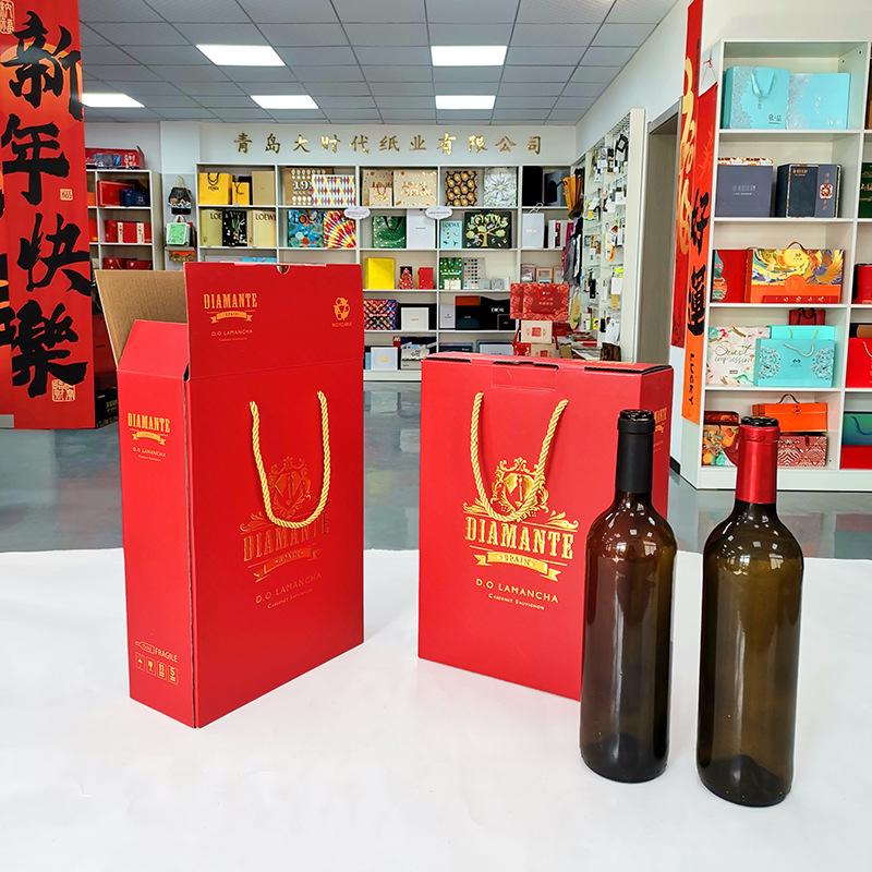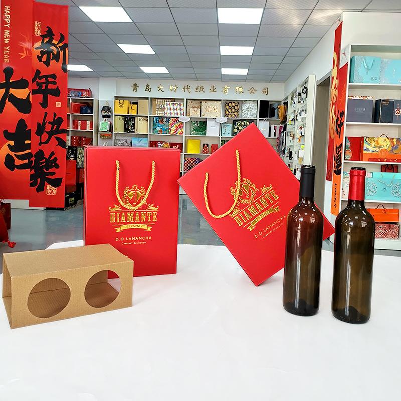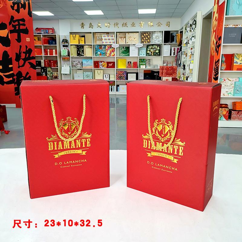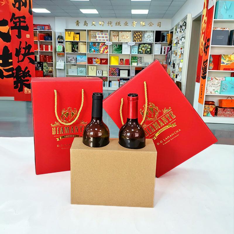 Caja de regalo de vino tinto, embalaje de cartón de vino tinto, caja de vino individual y doble, varias especificaciones, se pueden imprimir con logotipo, caja de regalo portátil roja