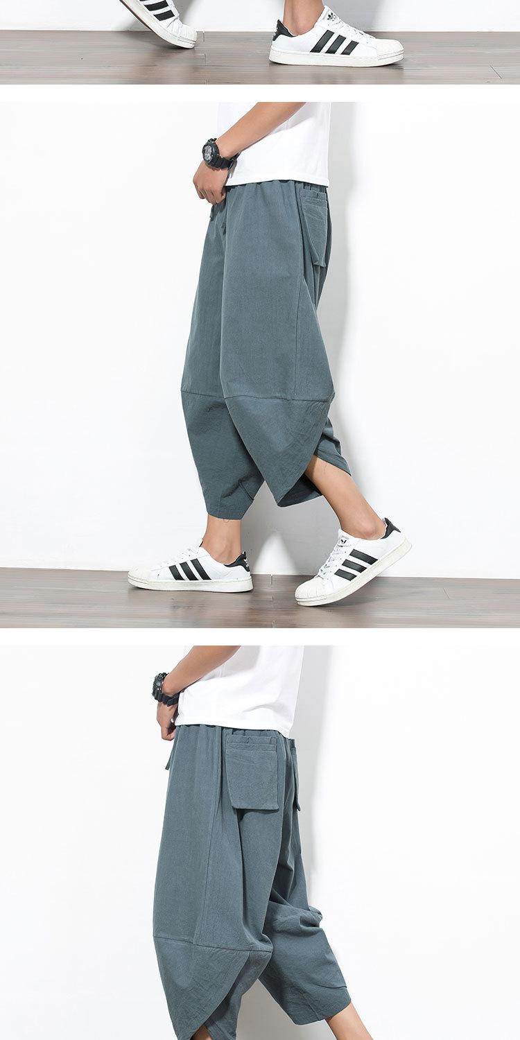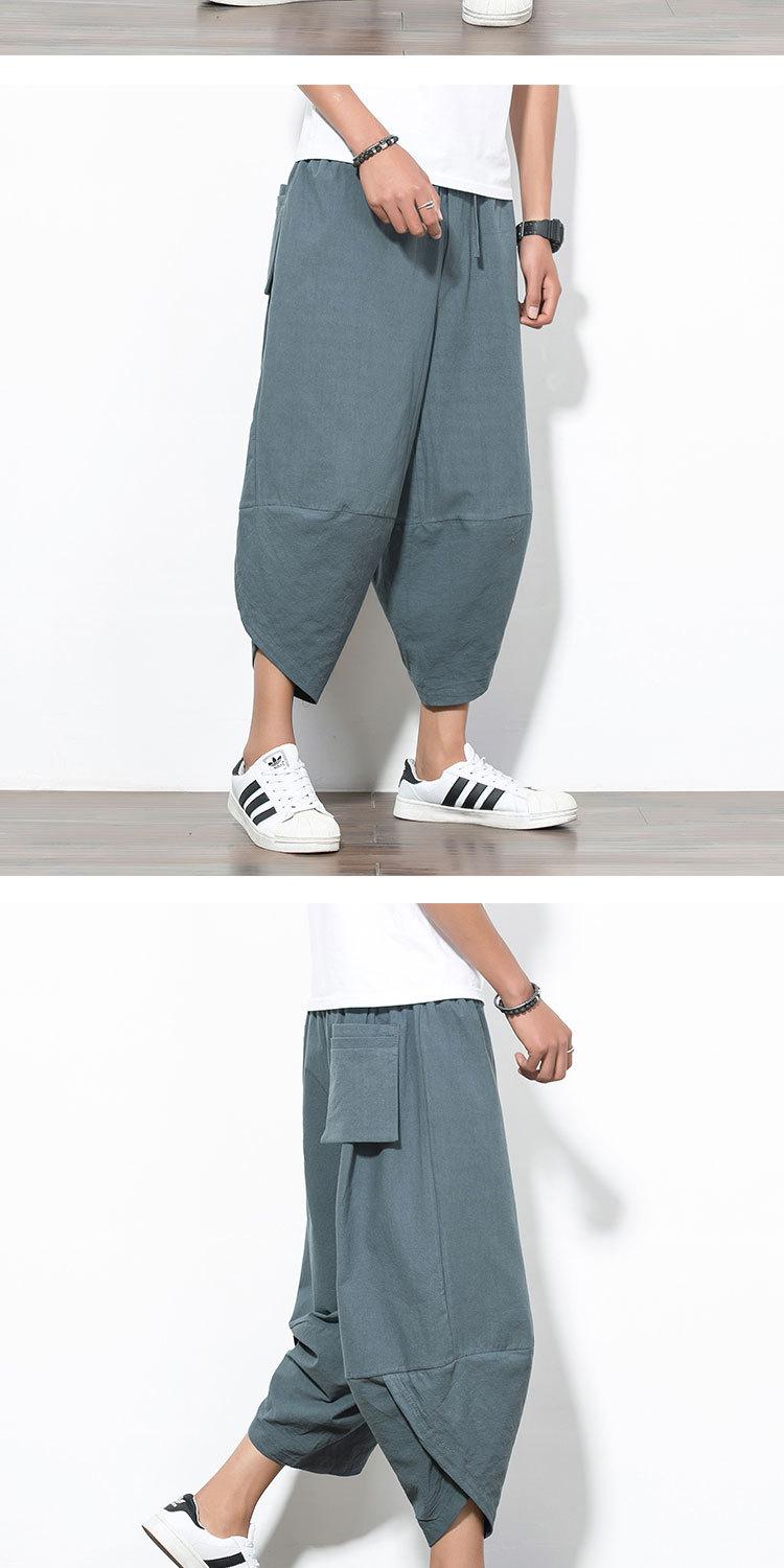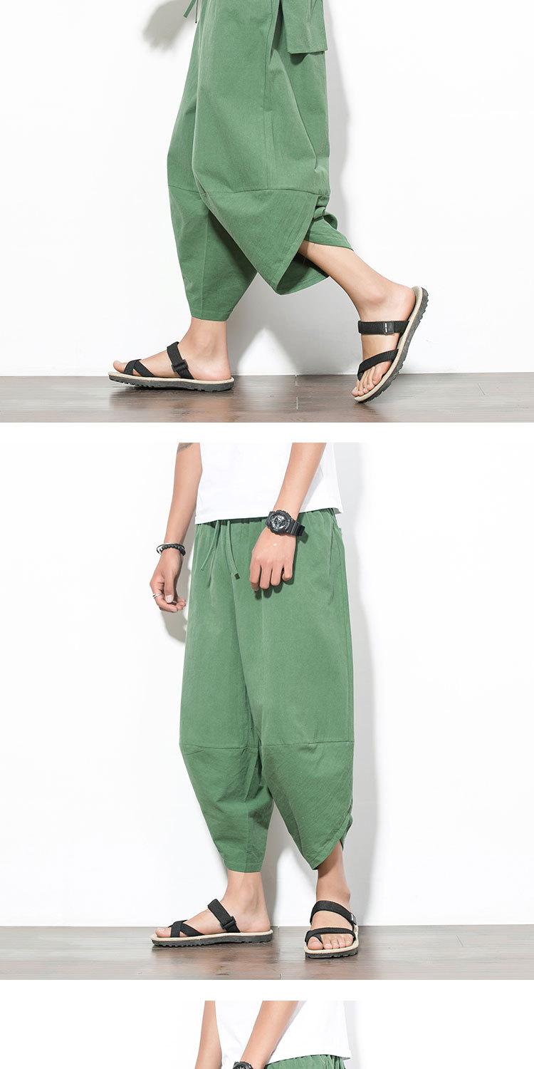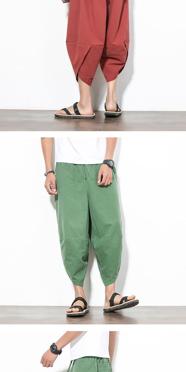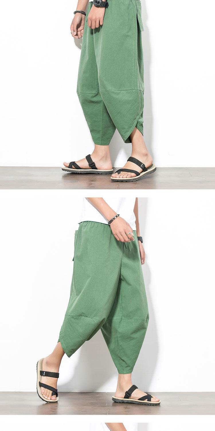 Compra Verano nuevo estilo chino algodón y lino talla grande holgados pantalones rábano para hombre color sólido casual pantalones harem modernos de pierna ancha al por mayor en Joom.pro