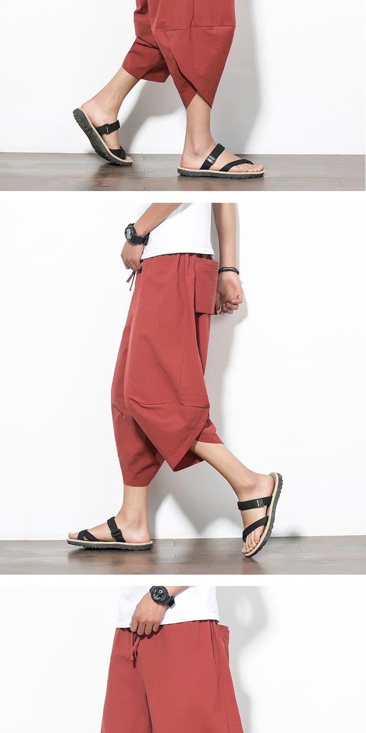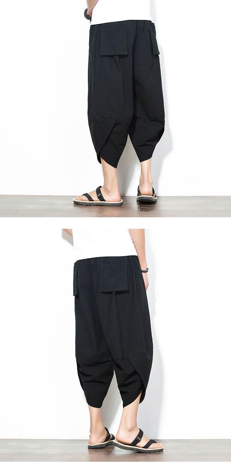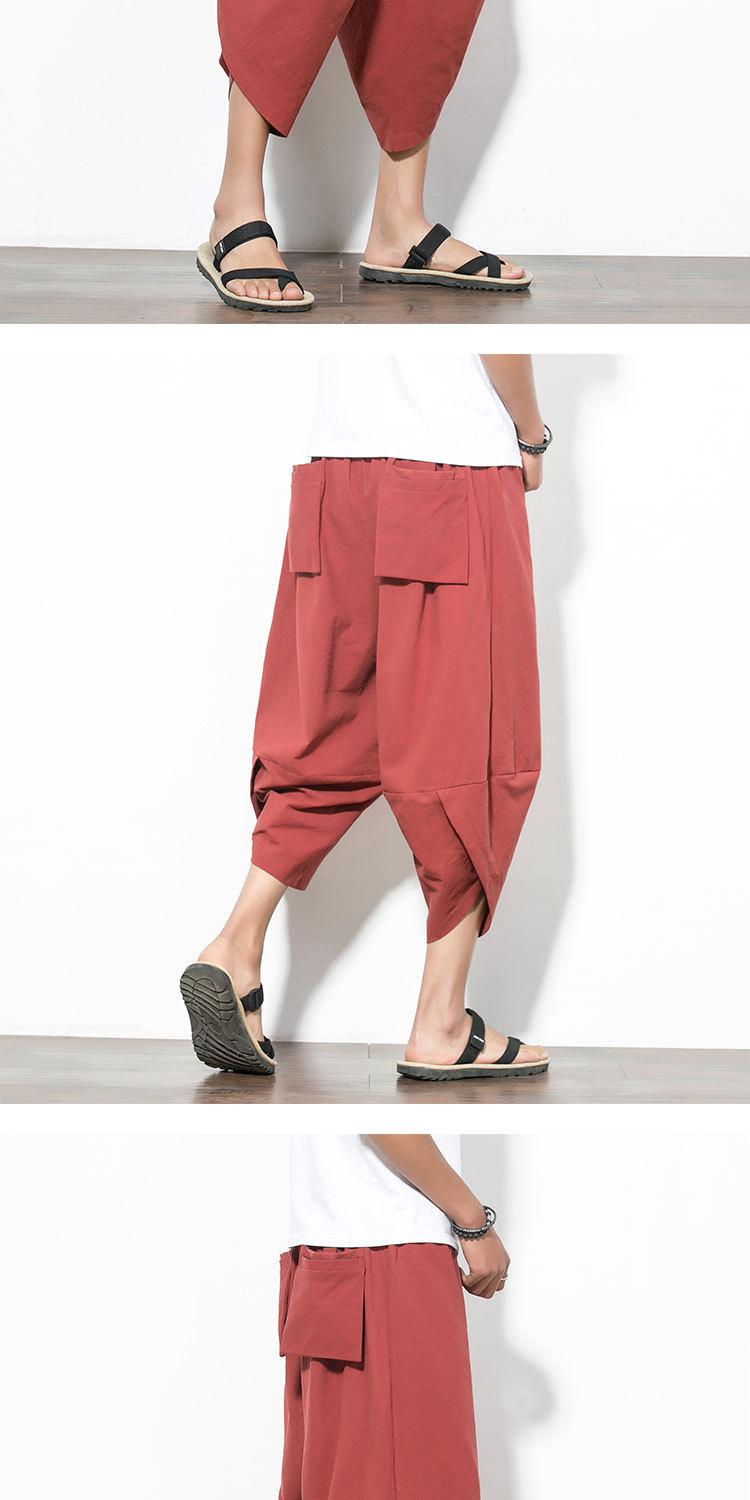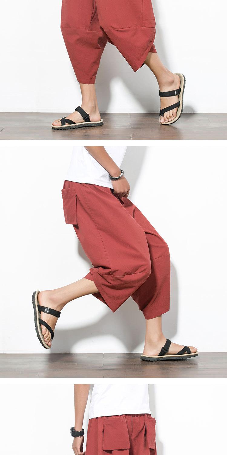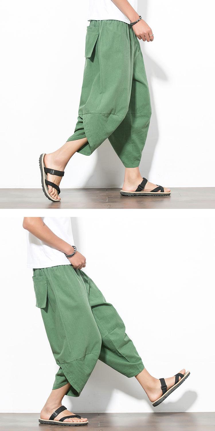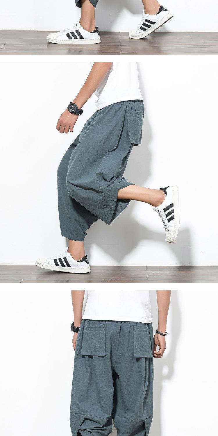 Compra Verano nuevo estilo chino algodón y lino talla grande holgados pantalones rábano para hombre color sólido casual pantalones harem modernos de pierna ancha al por mayor en Joom.pro
