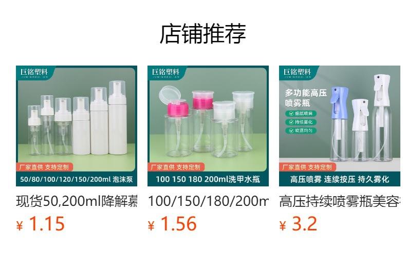 Price grids starting from 50000 pieces; 350ml foam bottle (black); pet
