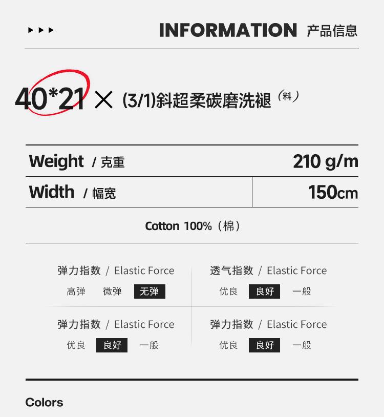 Tela de algodón descolorida de 210 g, súper suave y inclinada, no elástica, para primavera y otoño, para pantalones casuales cortavientos para hombres y mujeres.