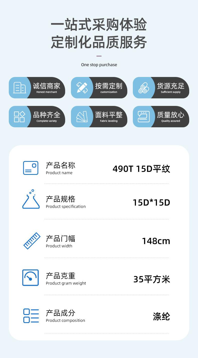 Suministro del Fabricante 490t 15D Tejido Liso de Poliéster Chaqueta de Algodón Chaqueta Ropa Exterior Cortavientos Tejido al por Mayor
