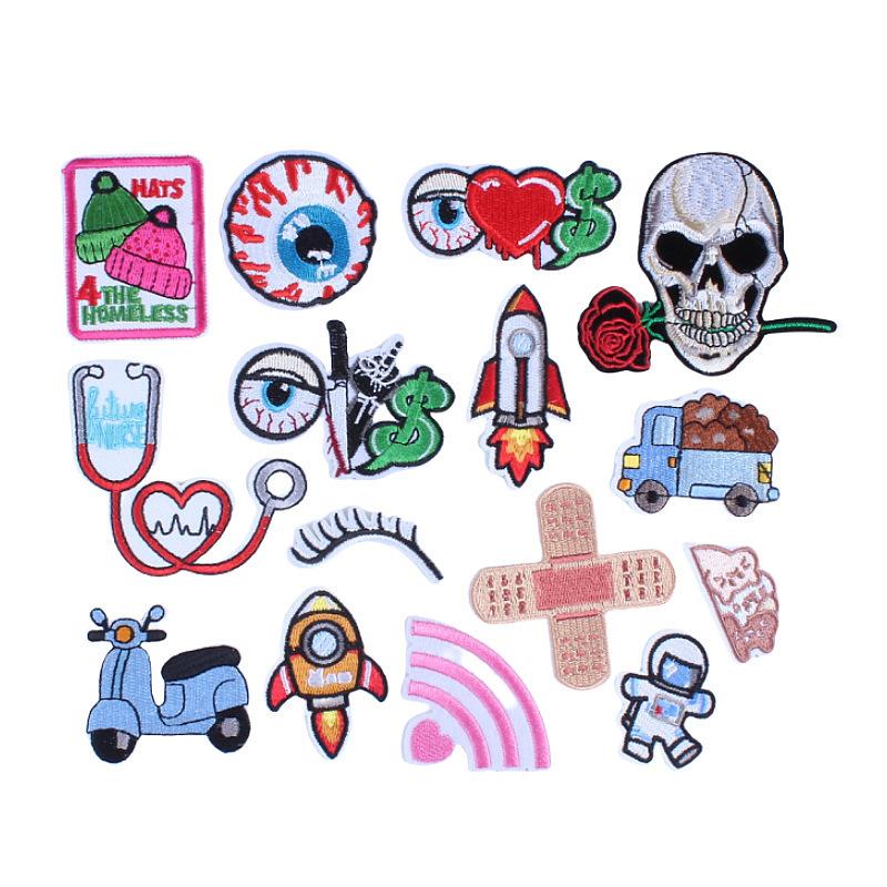 Pequeña Etiqueta de Tela Bordada de Estilo Coreano de Robot Bordado Fábrica Parche de Tela Corazón de Póker Etiqueta Tejida Accesorios de Parche DIY