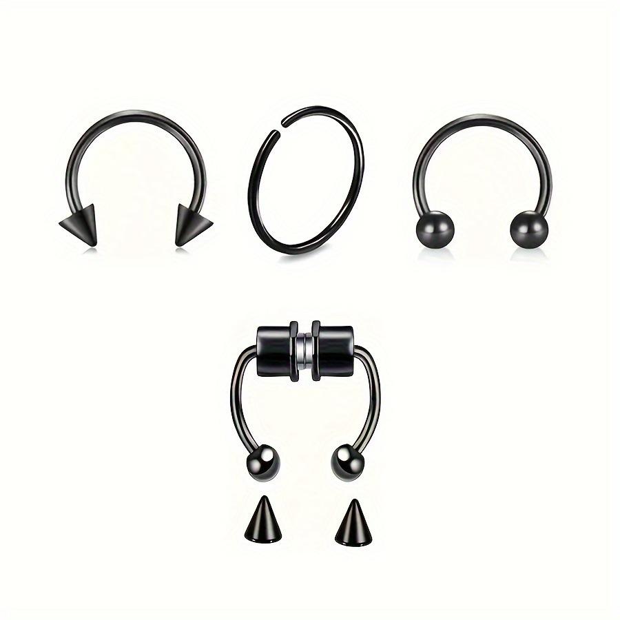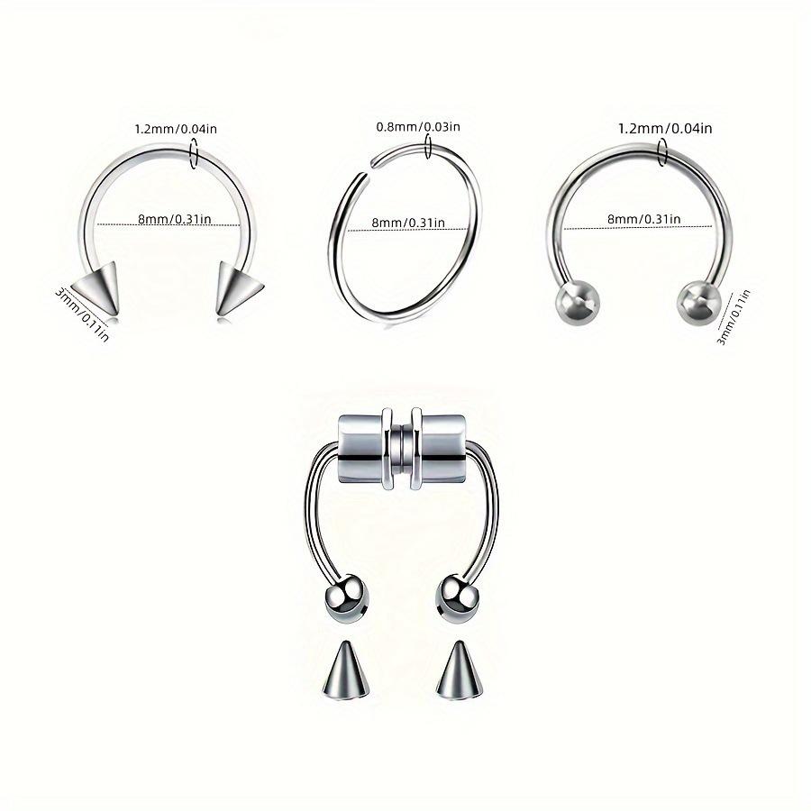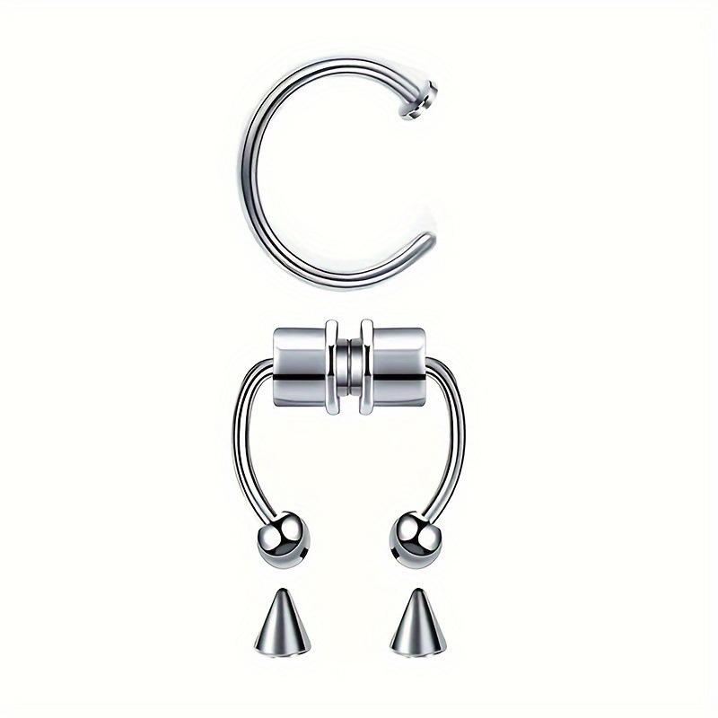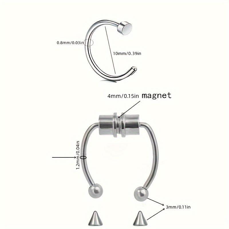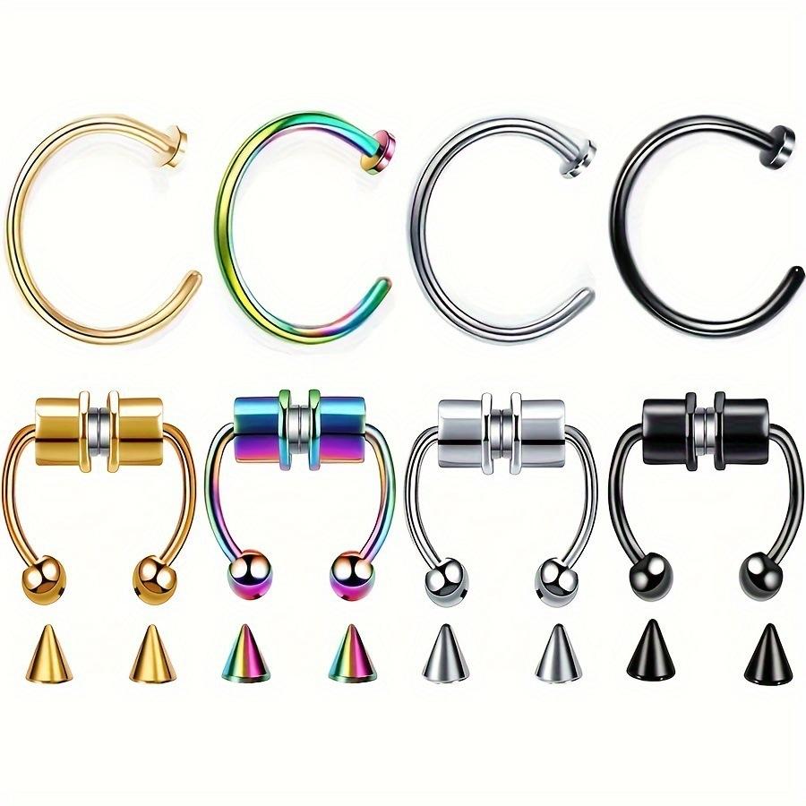 Anillo nasal magnético de acero inoxidable de 2, 4 y 8 piezas transfronterizo sin orificio de perforación, anillo nasal con perforación, joyería, traje temu