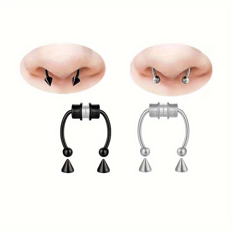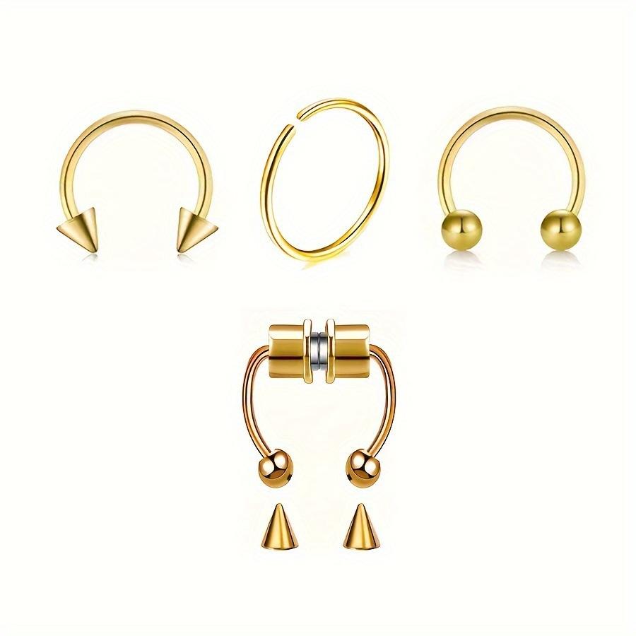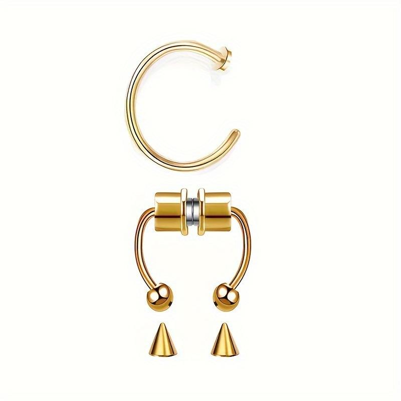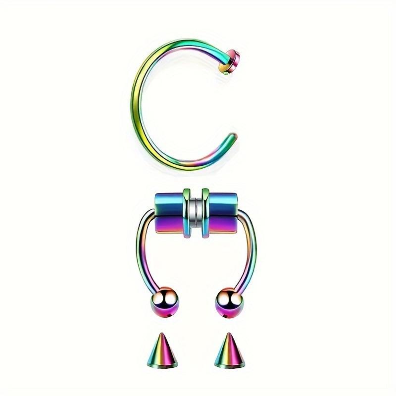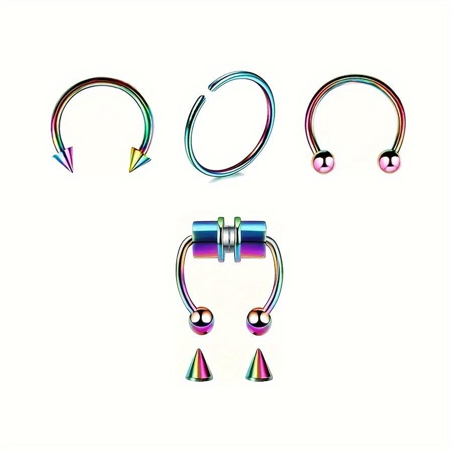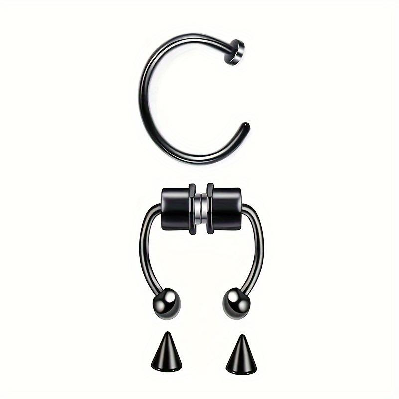 Anillo nasal magnético de acero inoxidable de 2, 4 y 8 piezas transfronterizo sin orificio de perforación, anillo nasal con perforación, joyería, traje temu