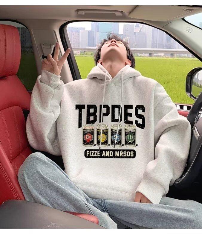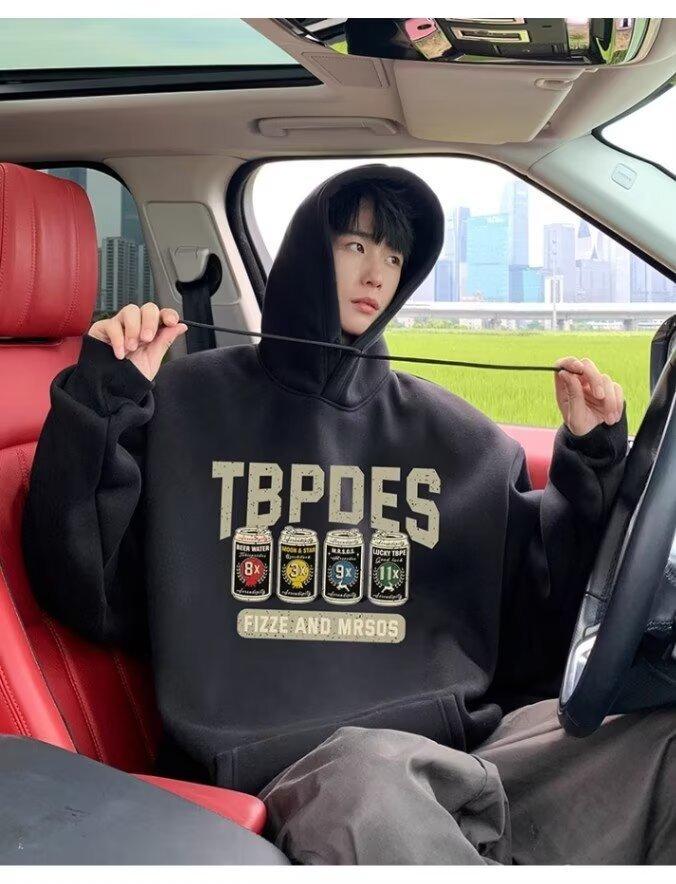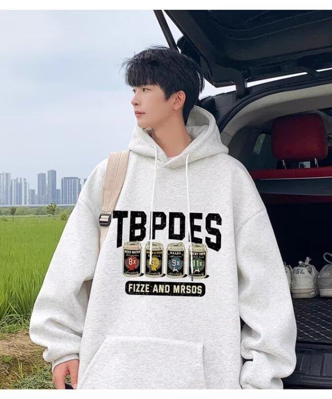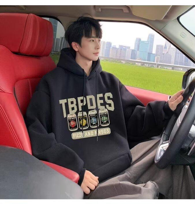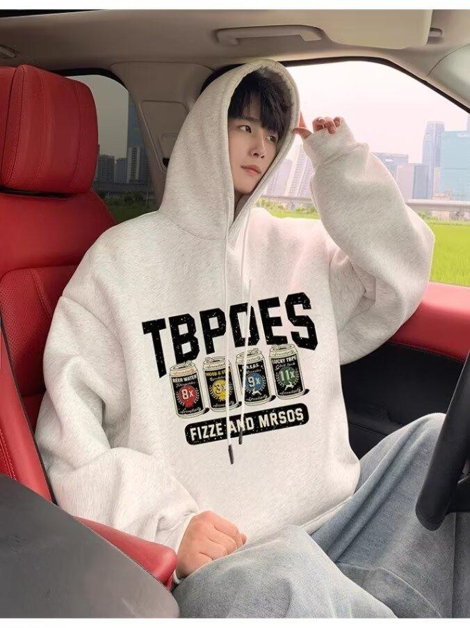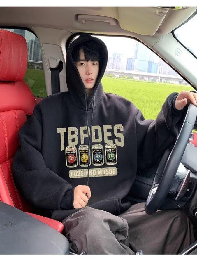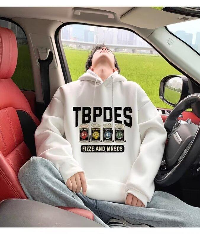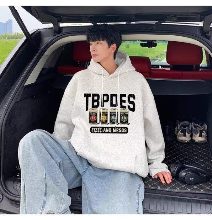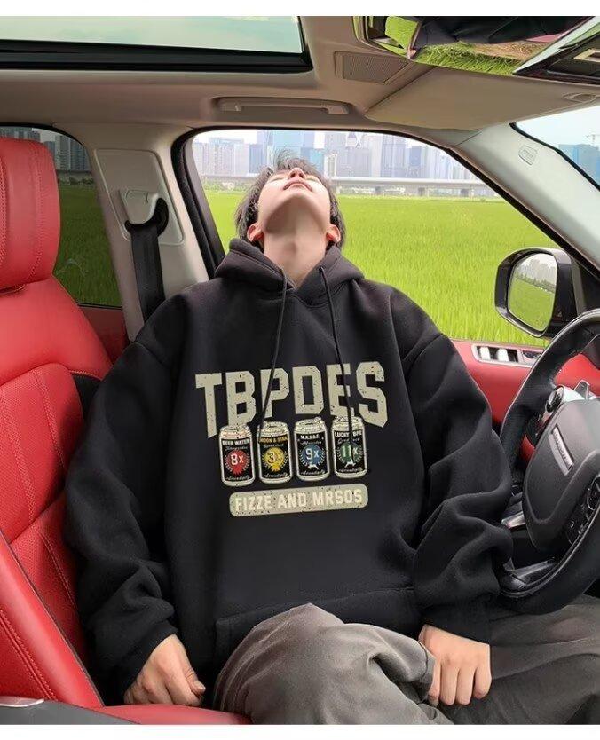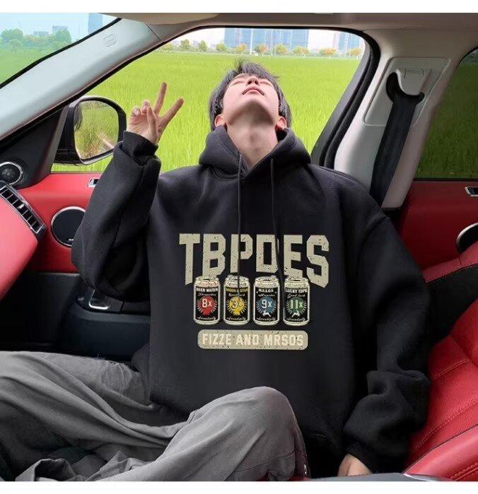Sudadera con capucha y forro polar para hombre, chaqueta informal holgada de estilo americano con estampado de letras, para otoño e invierno