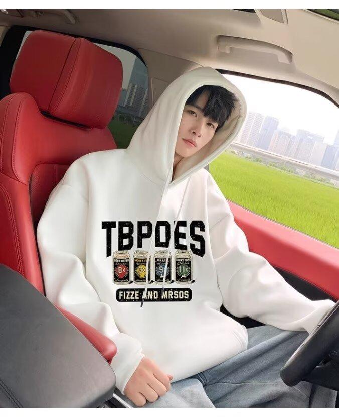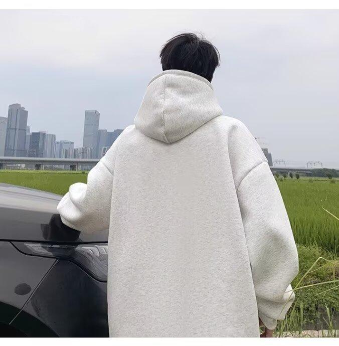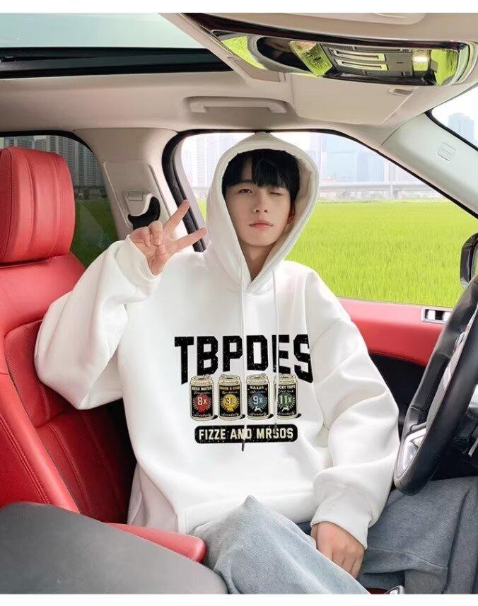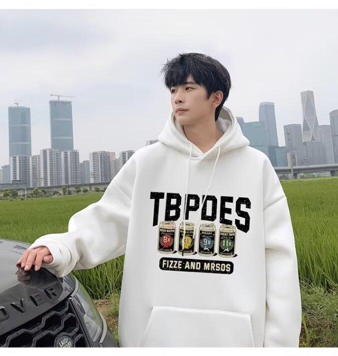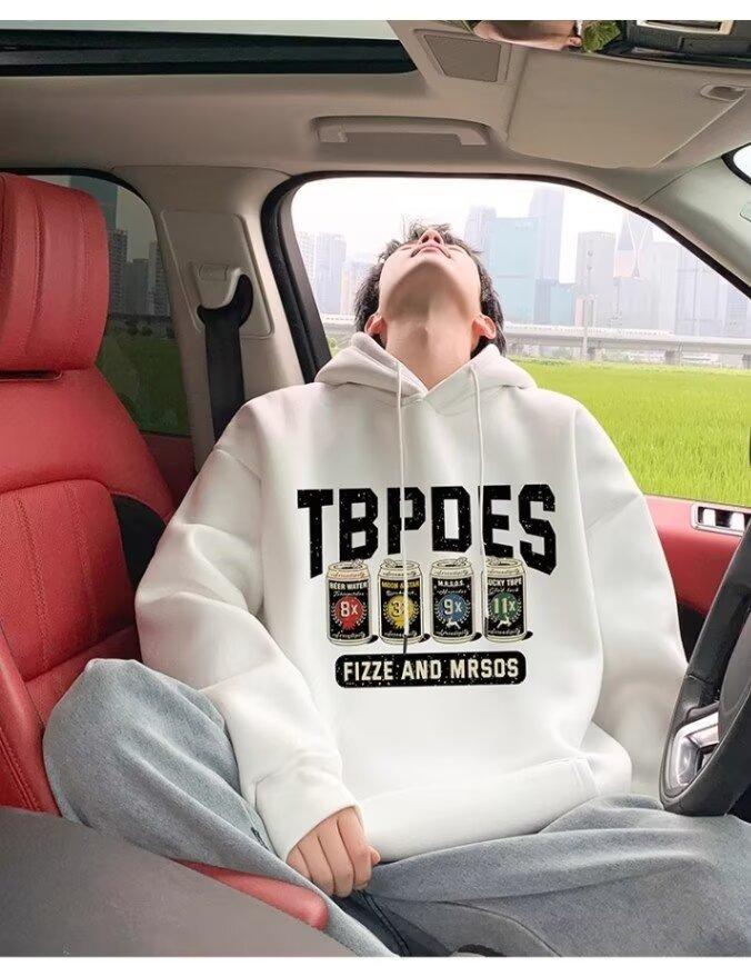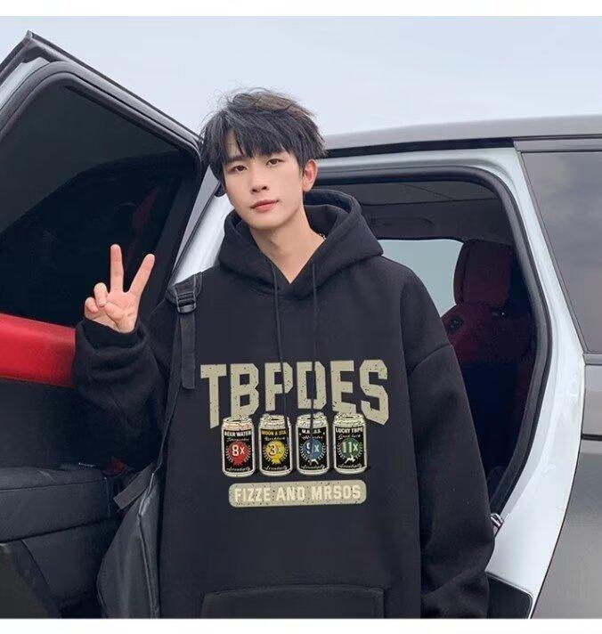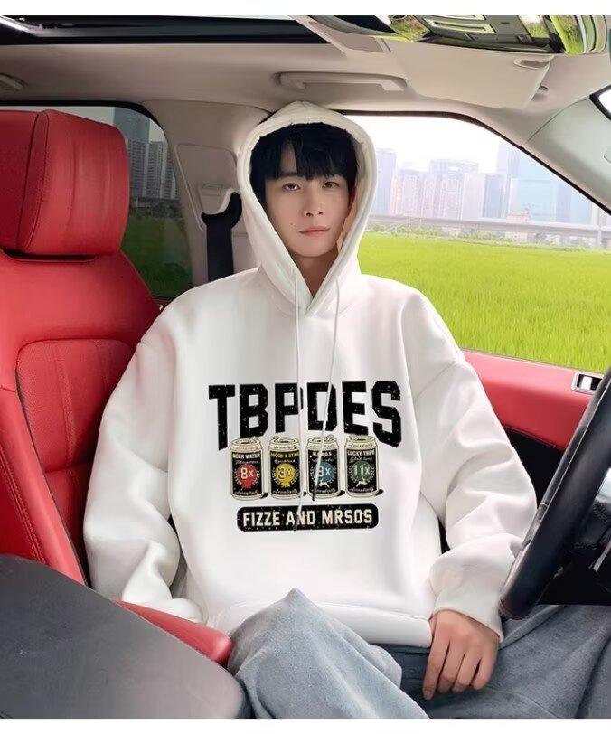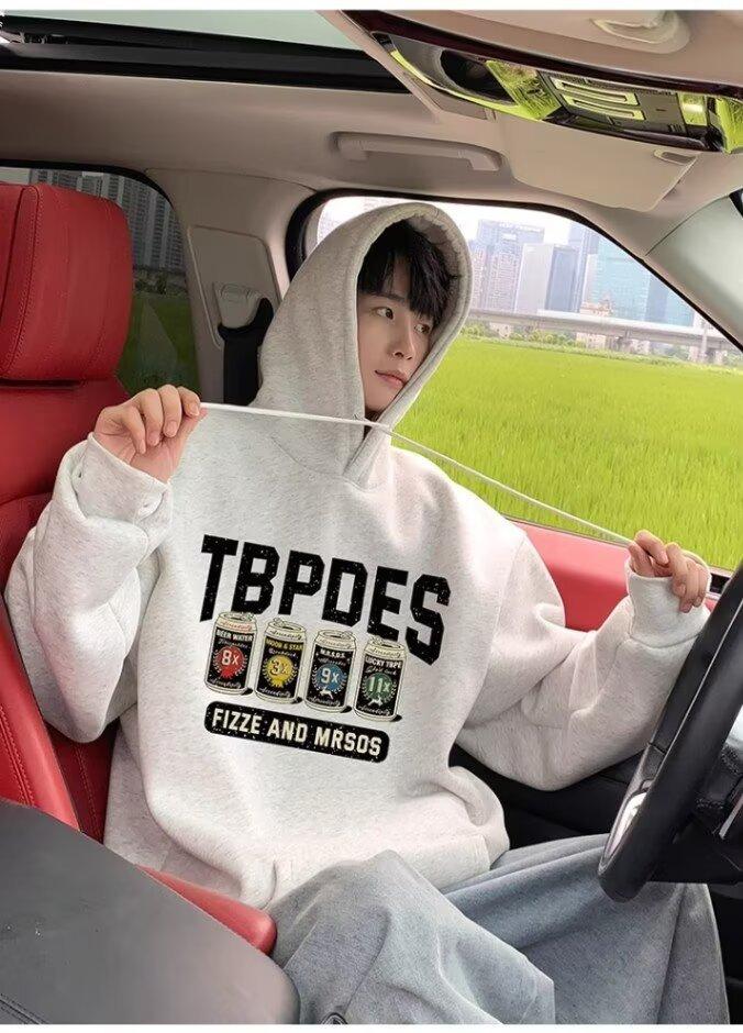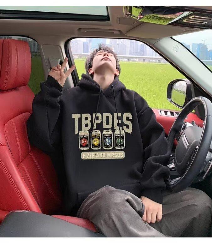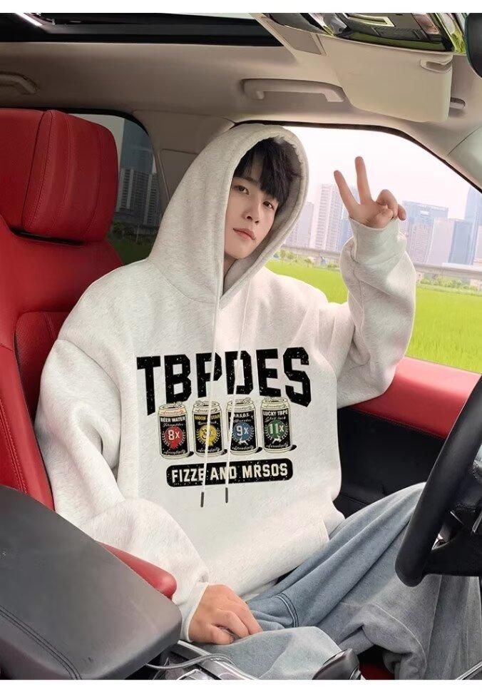 Sudadera con capucha y forro polar para hombre, chaqueta informal holgada de estilo americano con estampado de letras, para otoño e invierno