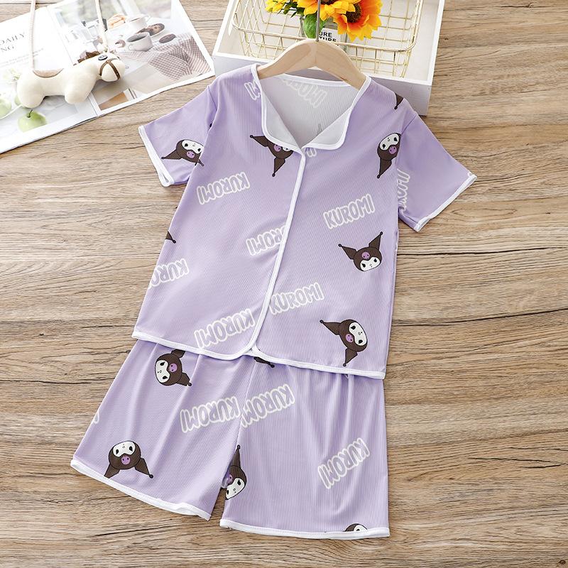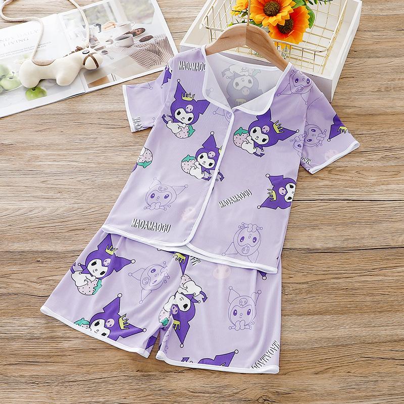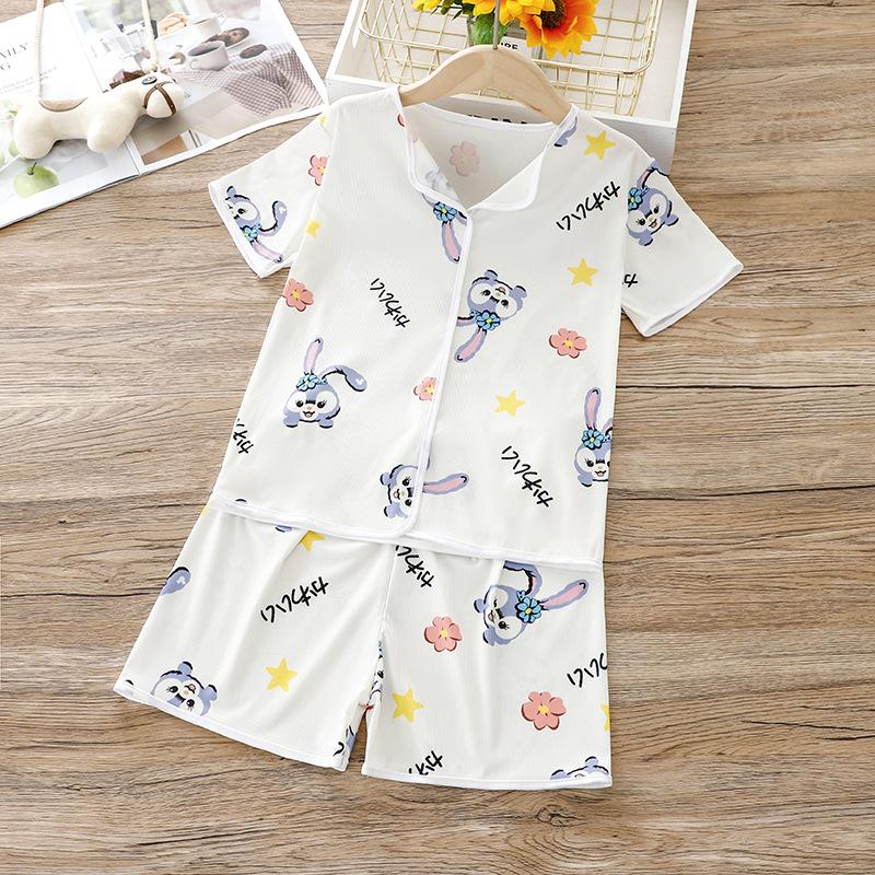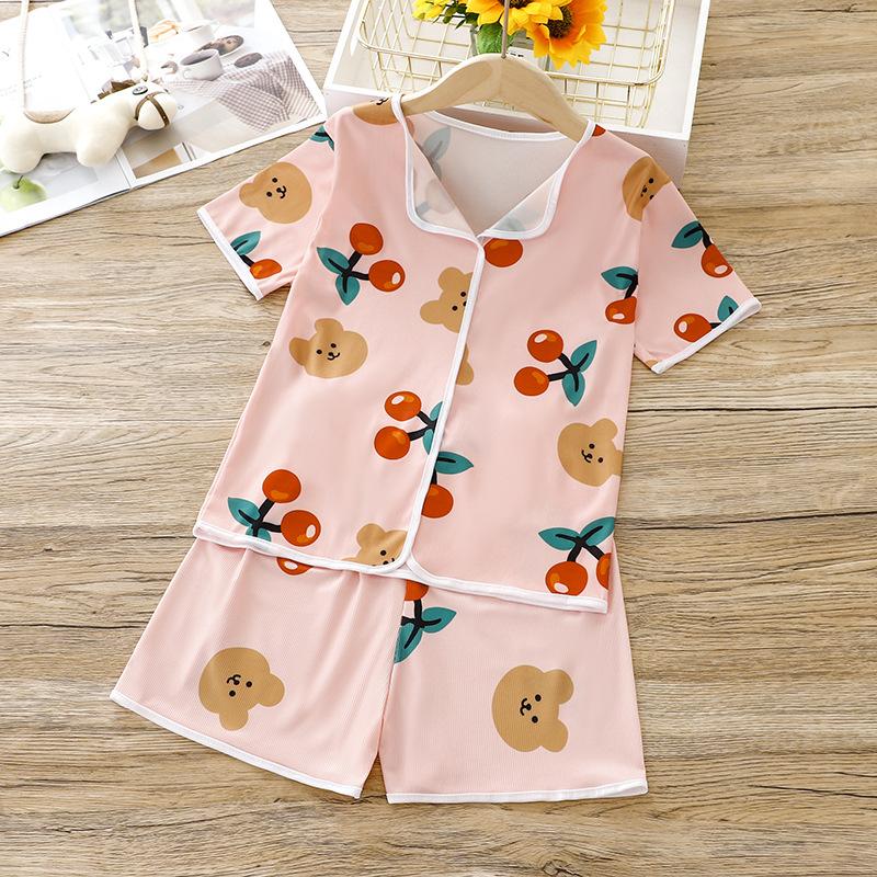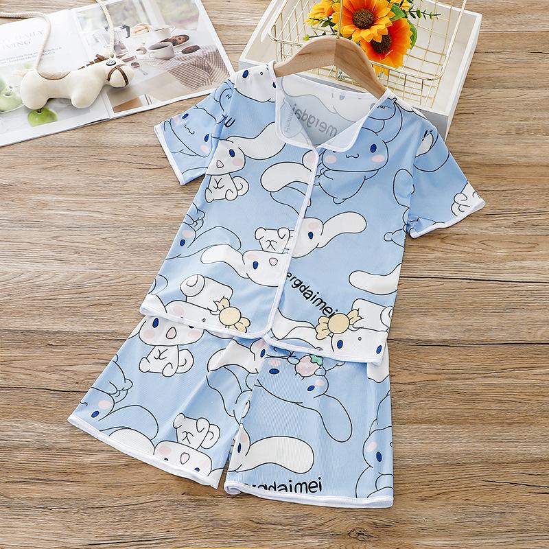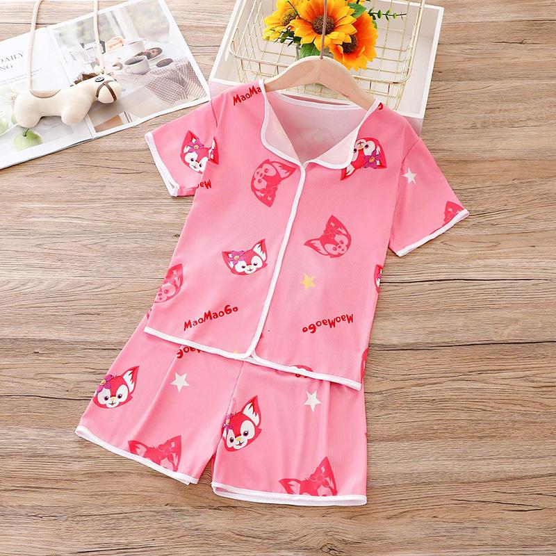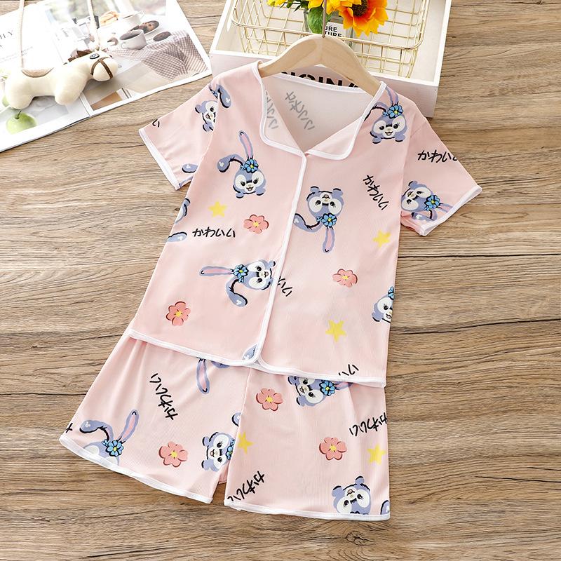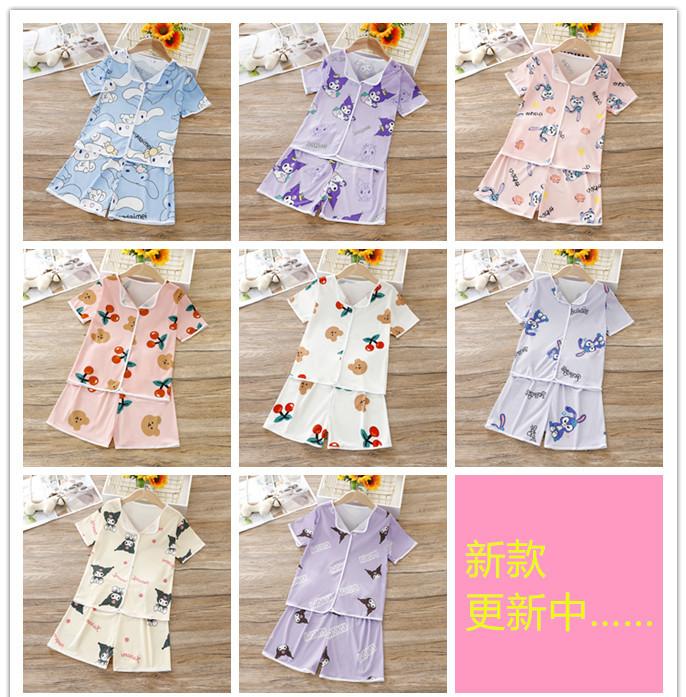 Ropa de casa para bebés y niños, pijamas de manga corta para niñas, de verano, finos y grandes, con dibujos animados, para niñas pequeñas, ropa exterior