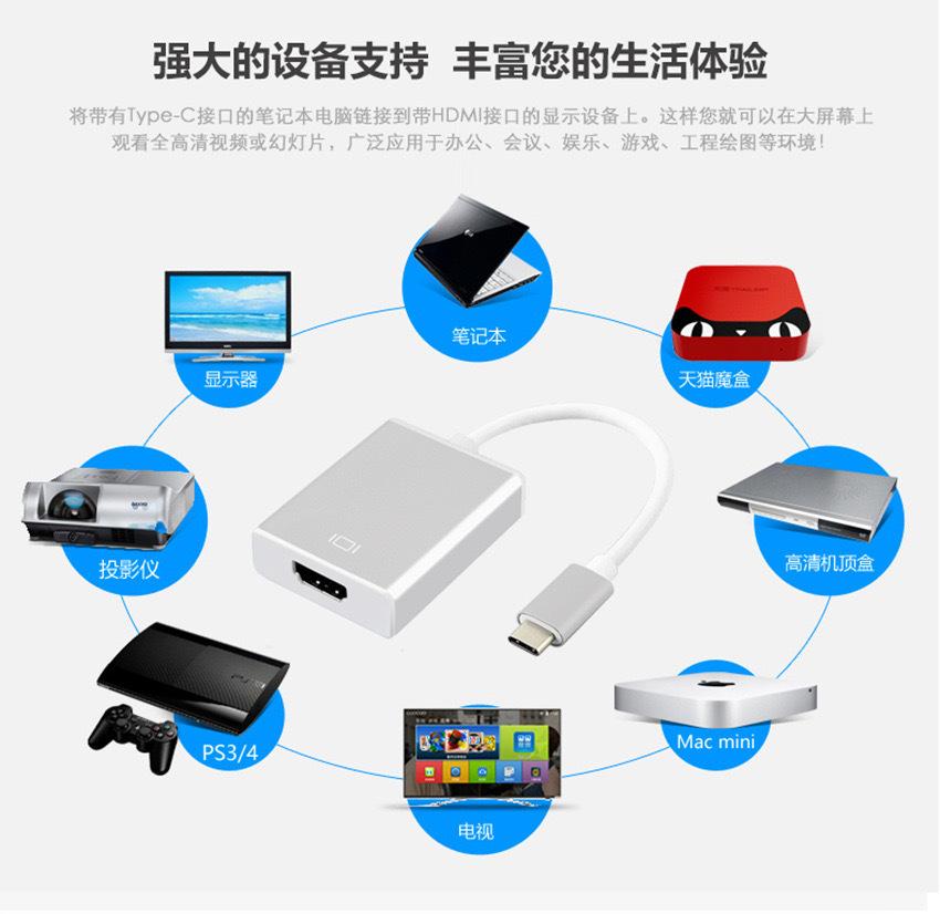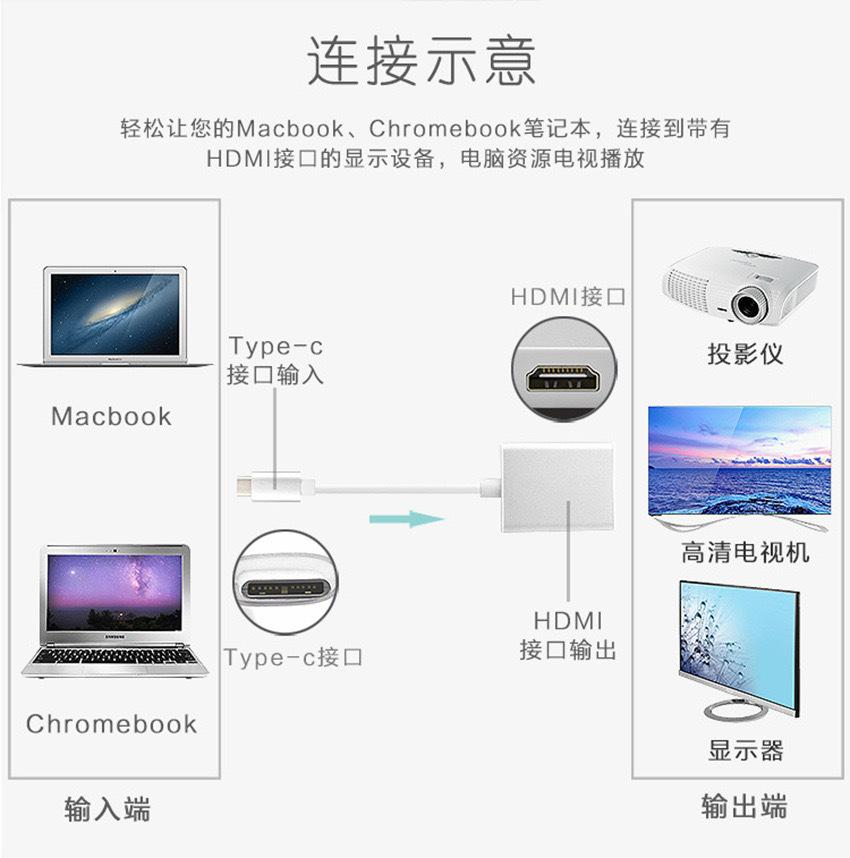 Adaptador de tipo C a HDMI para monitor/proyector con cable de pantalla Cable de pantalla USB C a HDMI