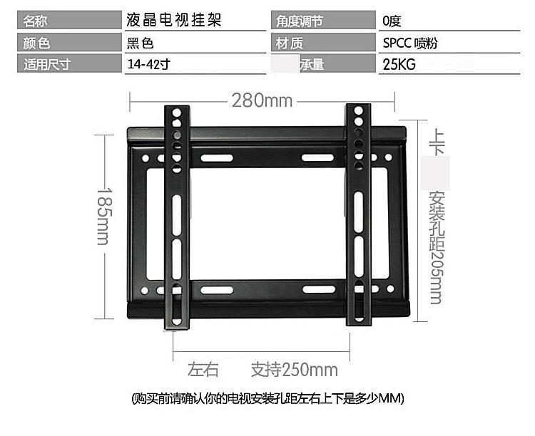 Tamaño de TV aplicable: 14-42 pulgadas (===depende de la distancia del orificio de instalación en la parte posterior del televisor==)
