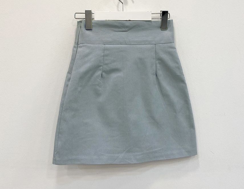 Haze blue skirt, White skirt, Black skirt, Light green shirt, White shirt, Light yellow shirt, Haze blue skirt...